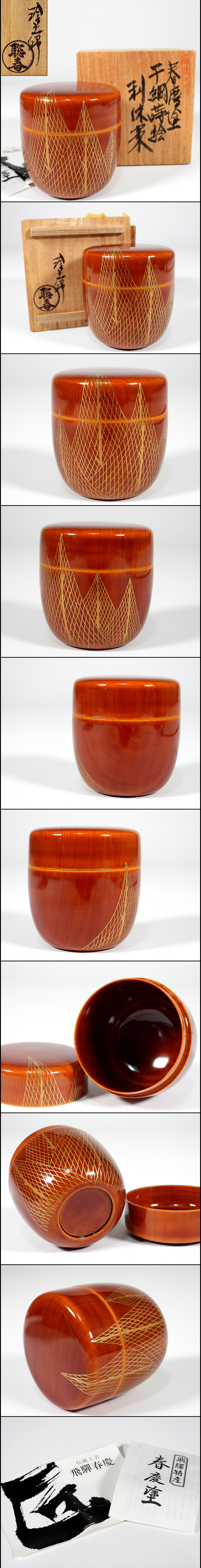 【騰立】塗師 聡春 作 春慶塗 千網蒔絵 利休棗 共箱 煎茶道具.■A861-3 收藏