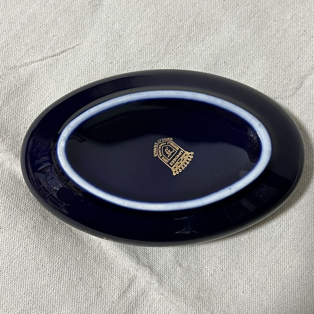 SI■ LIMOGES リモージュ トリンケットボックス 蓋付き 陶器 紺色 ネイビー 小物入れ ジュエリーボックス 置物 柄あり アンティーク 收藏