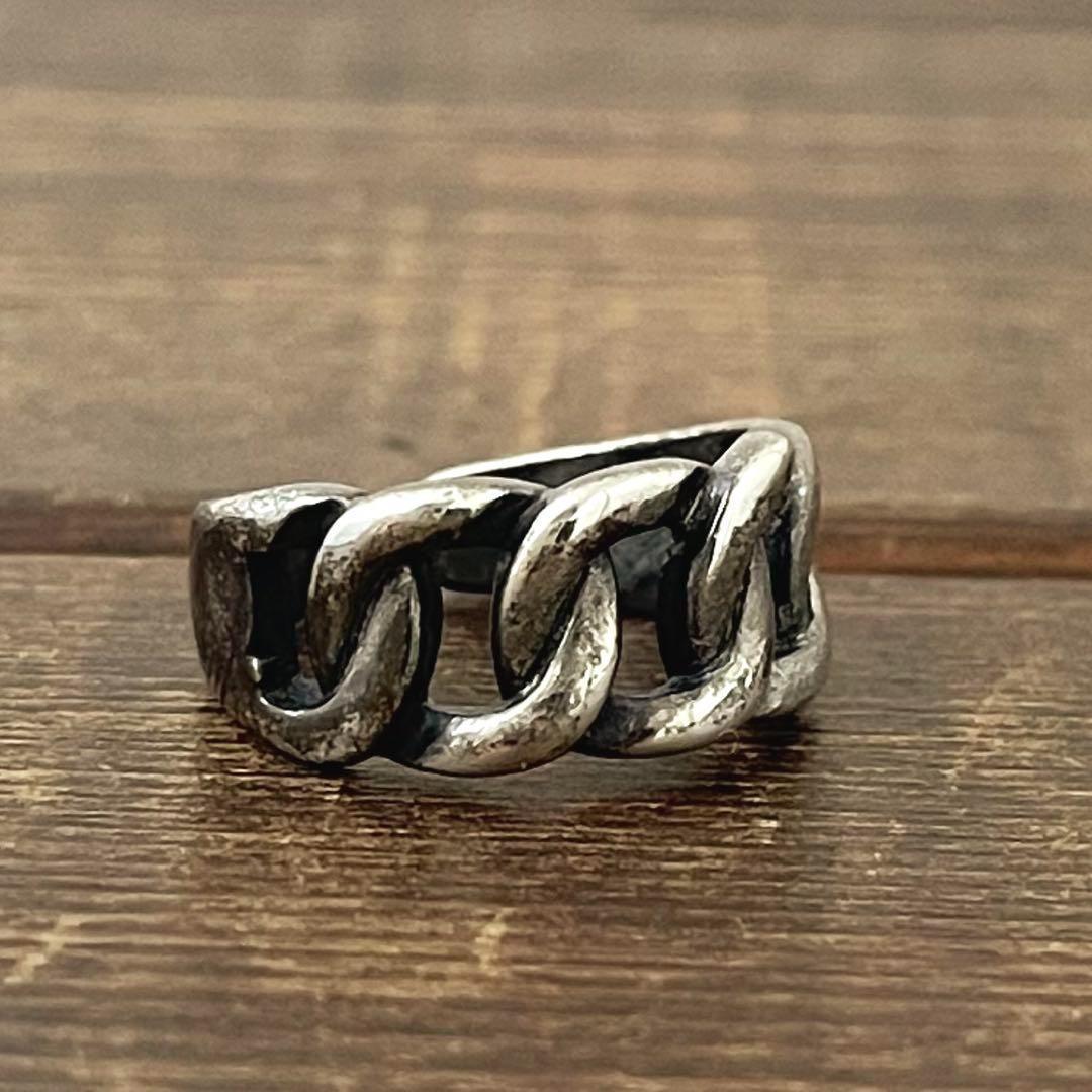 リング シルバー925 指輪 チェーン アンティーク アメカジ 燻し メキシカン ヴィンテージ 刻印 フリーサイズ オープンリング ハンドメイド 收藏