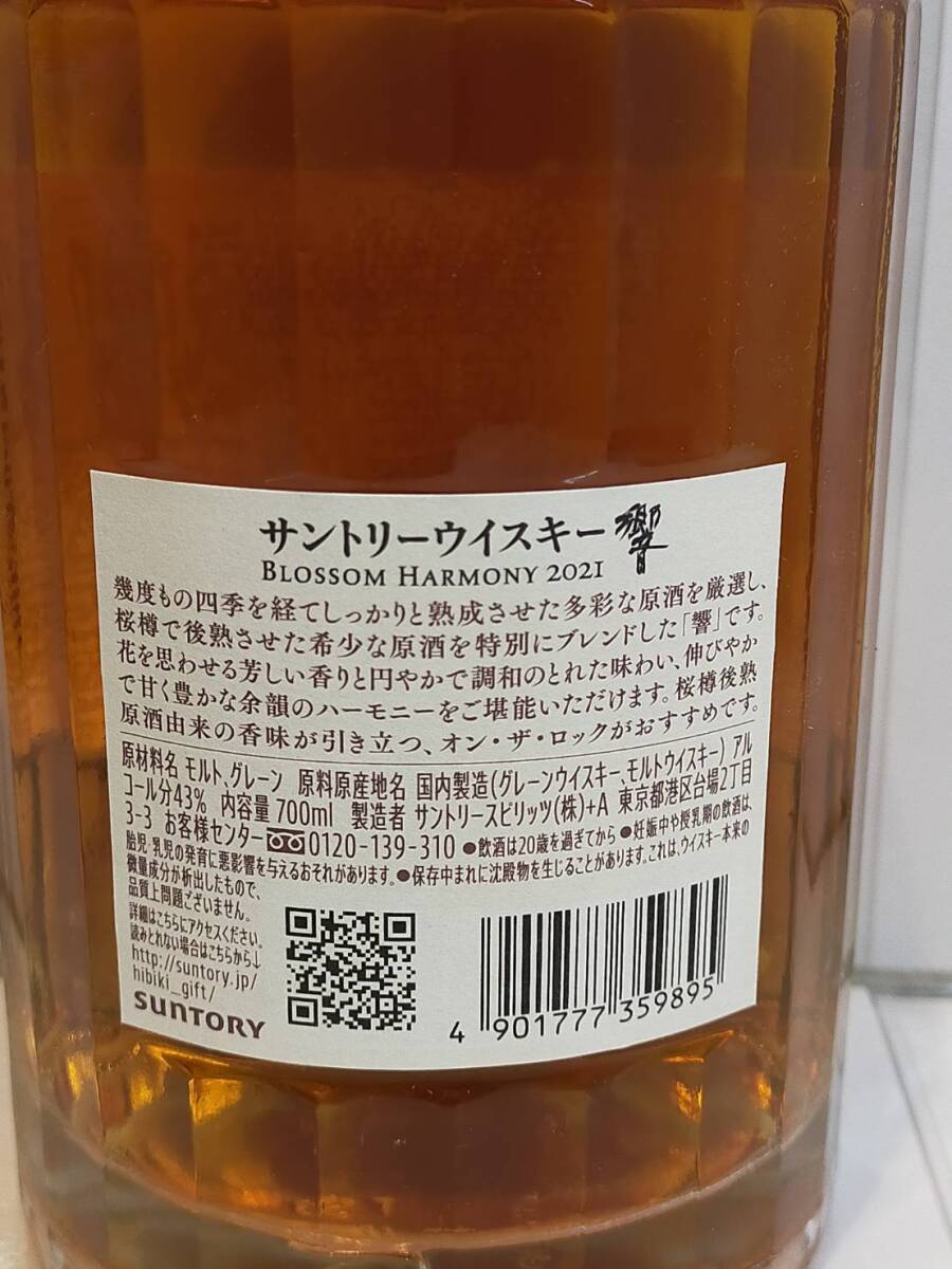 H 【SUNTORY】響 HIBIKI BLOSSOM HARMONY2021 ブロッサムハーモニー 700ml Arc43% GRAIN/MALT WHISKY サントリー ウイスキー 箱付き 未開栓 收藏