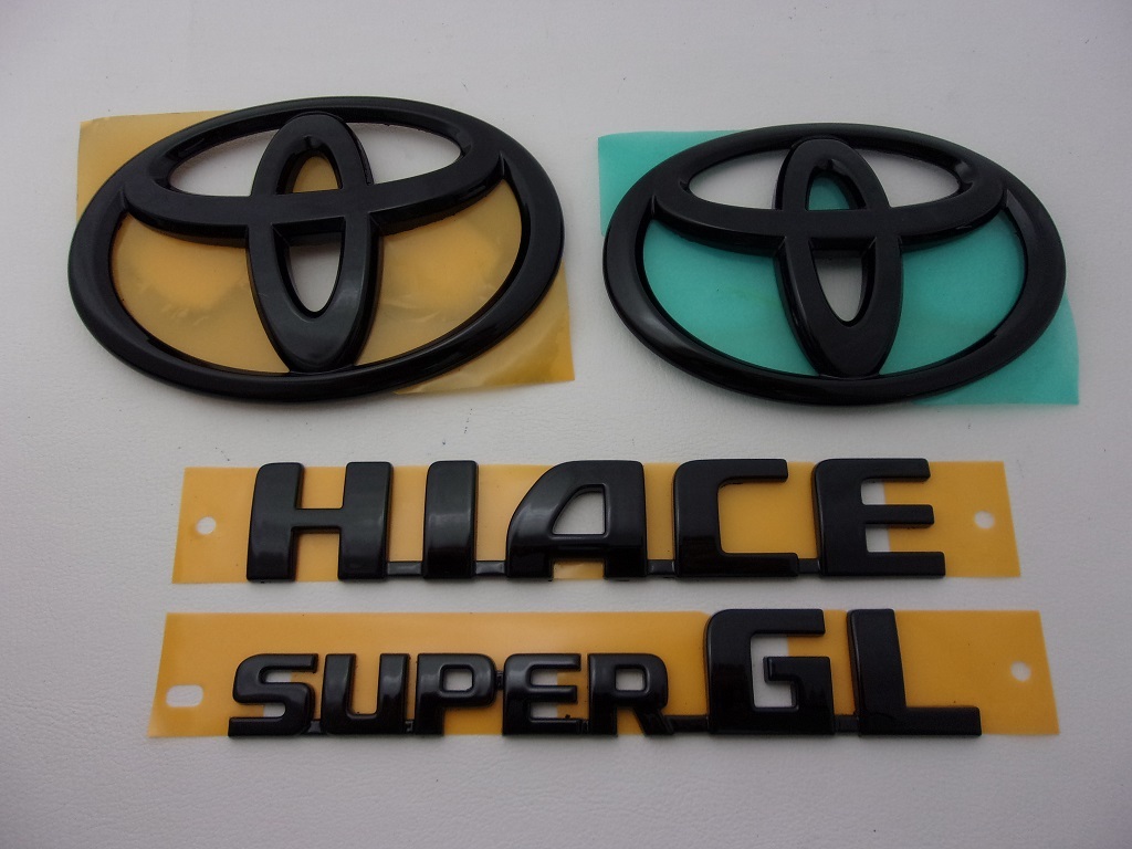 ピアノブラック!【数量限定 特別価格】200系 ハイエース トヨタカラー.202 艶有ブラック エンブレム4点 + ナンバーフレームF&R取付キット 收藏