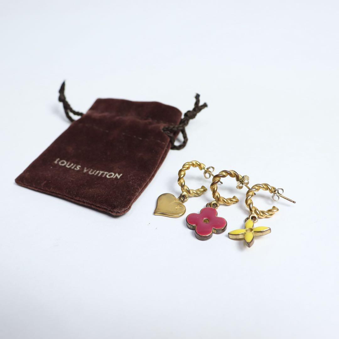 | 〇ブランド LOUIS VUITTON ルイヴィトン ○商品名やデザイン ブークルドレイユ スウィートモノグラム 3点セット M65370 金属にくすみ、使用感ありますがレトロな雰囲気があり味があります 大手トレファクスタイルにて購入 〇カラー ゴールド 〇サイズ サイズハート:14.6×15.0mm フラワー(赤):15.2×15.2mm フラワー(黄):15.3×15.3mm ○コンディション USED ややくすみ、使用感あり ○検索用 レディース フープピアス 3点セット M65472 管理番号R187 |