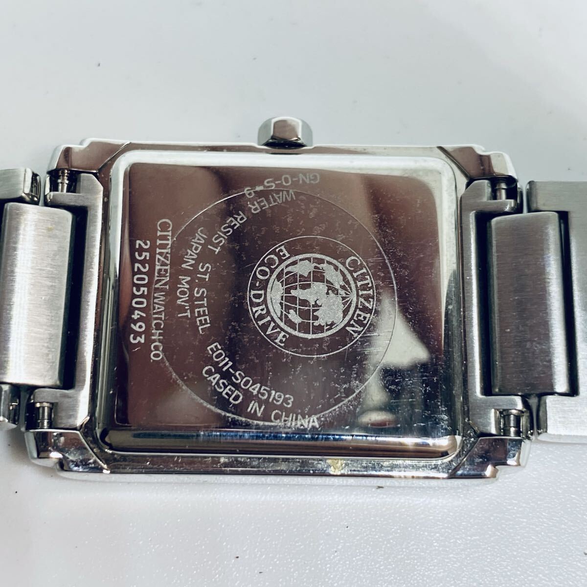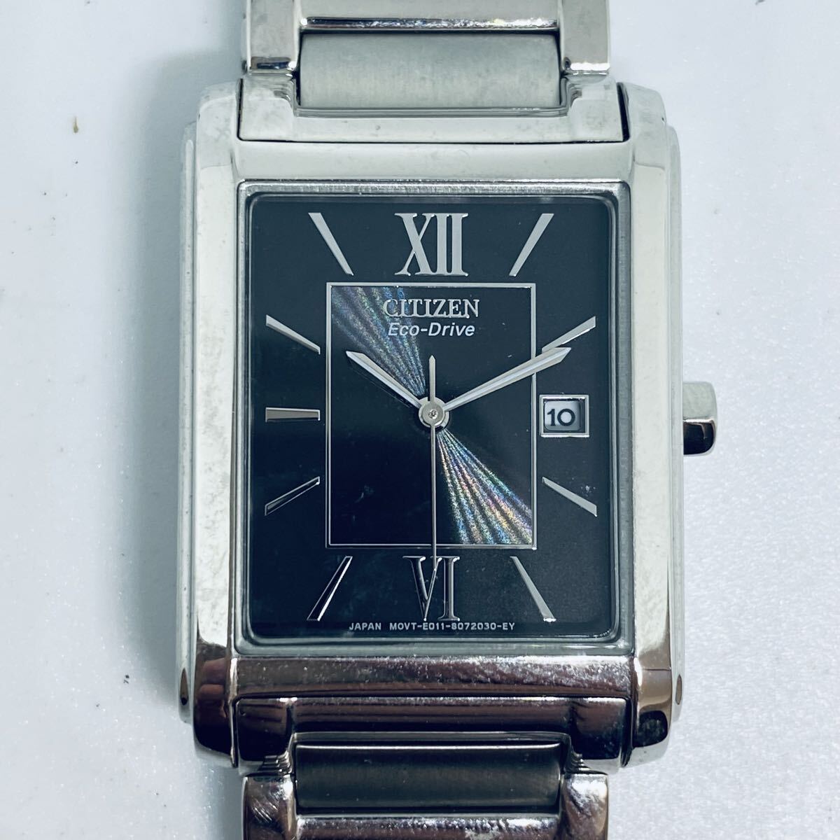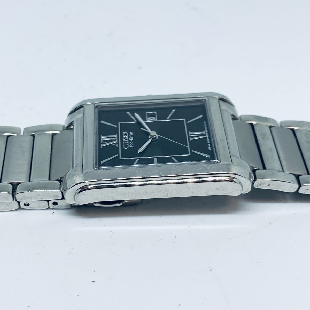 34681 CITIZEN シチズン 腕時計 エコドライブ Eco-Drive アナログ スクエア クォーツ シルバー ソーラー デイト E011-S045193 ジャンク 收藏