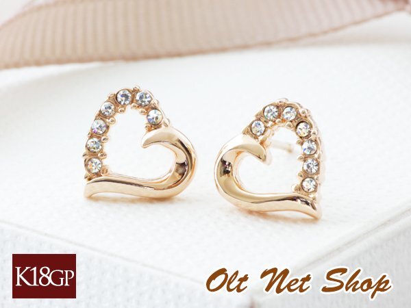 ハート ピアス ジルコニア レディース ピンクゴールド 18金 18kコーティング シンプル 上品 小ぶり / K18GP CZダイヤ オープンハートピアス 收藏