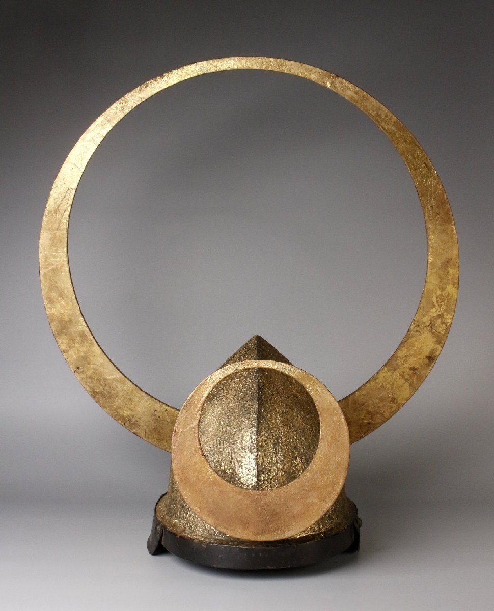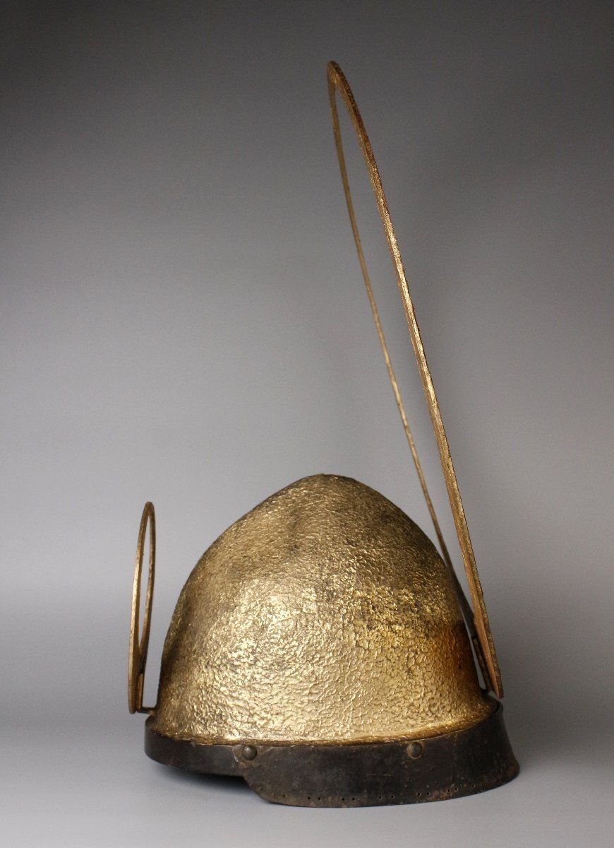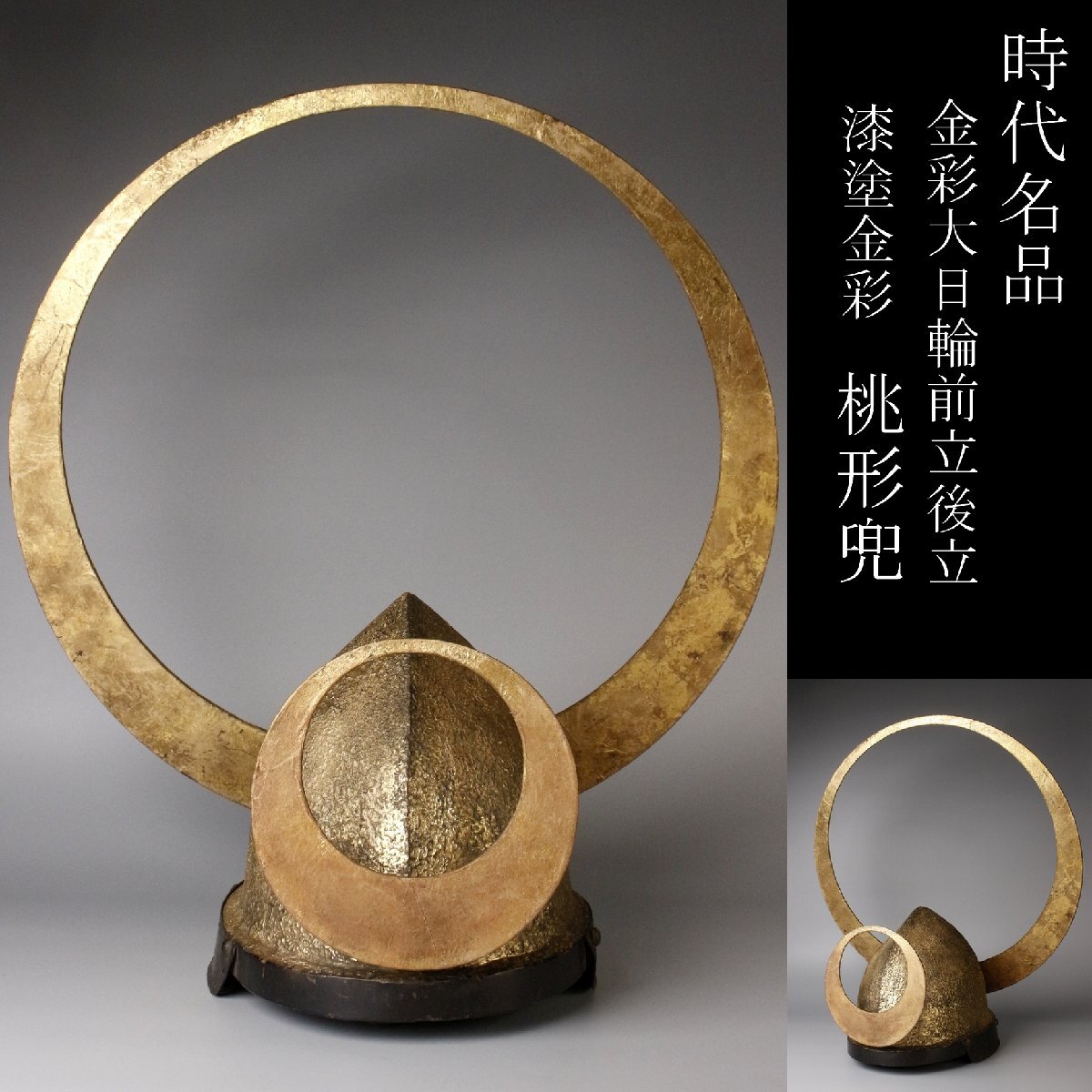 【LIG】時代名品 漆塗金彩 桃形兜 金彩大日輪前立 後立 鎧兜 兜飾 甲冑 旧家収蔵品 [.QRE]25.10 收藏