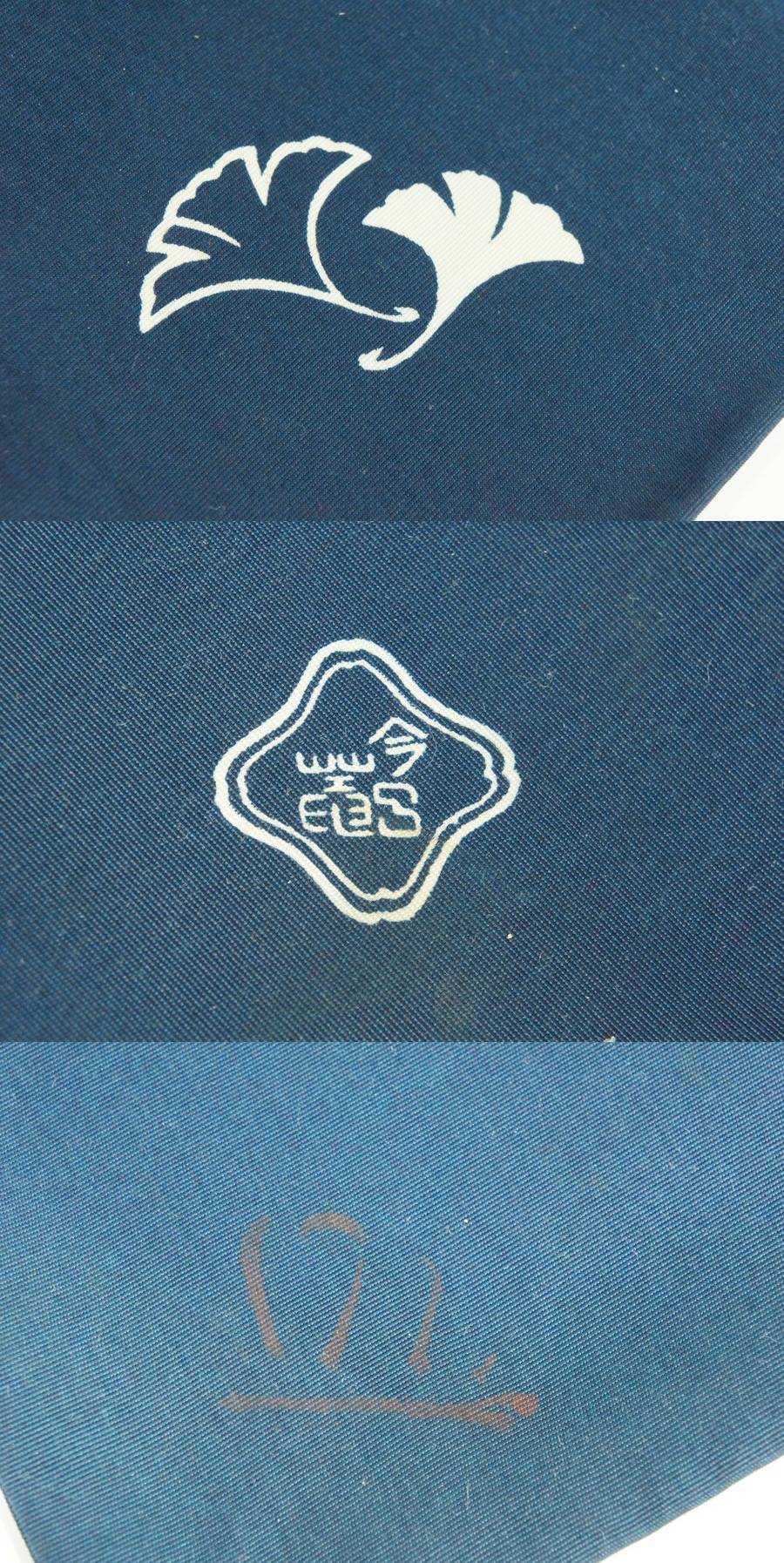 1/紺地銀杏文 裏側に花押・サインのようなものが書かれています。