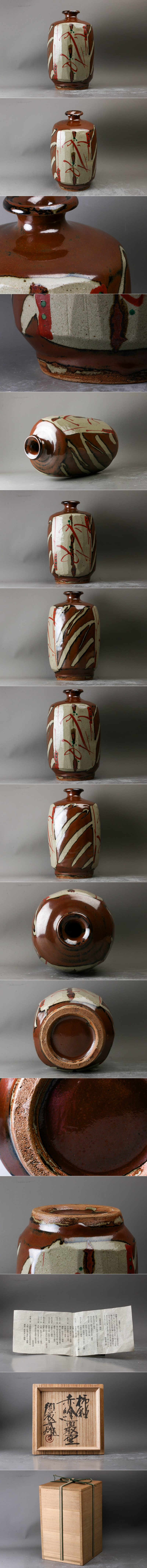 【SAG】須藤武雄 高さ27.5㎝ 柿釉赤絵面取壷 共箱 栞 本物保証(師:人間国宝 浜田庄司) 收藏