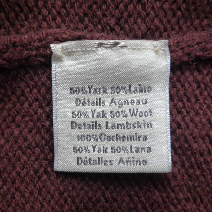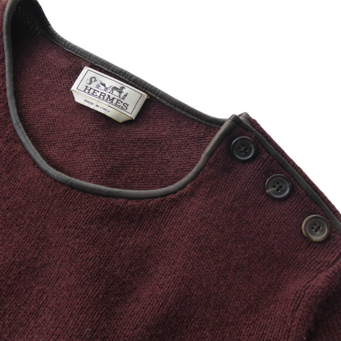 | エルメス(HERMES) ヤク×ウール ミドルゲージ ニット ラムレザー パイピング L ボルドー ソルド品 ウェア メンズ(中古) |