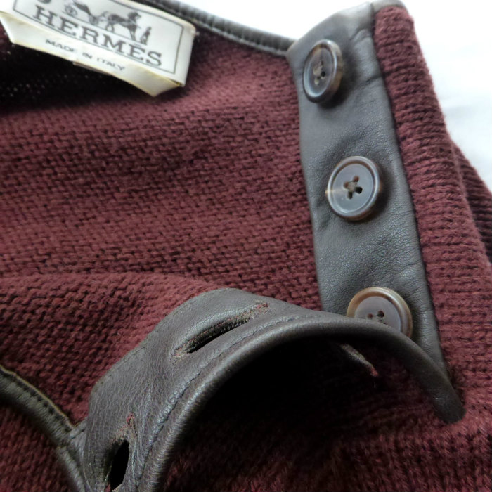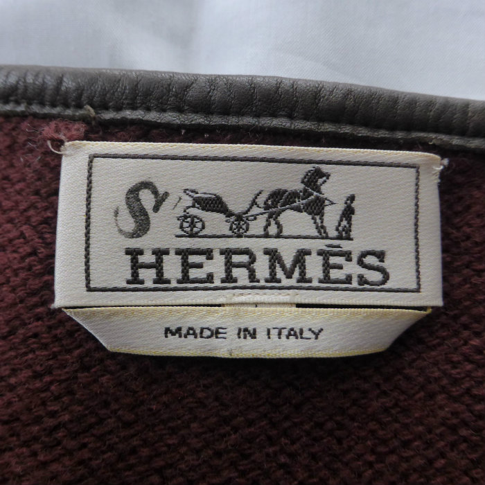 エルメス (HERMES) ヤク×ウール ミドルゲージ ニット ラムレザー パイピング L ボルドー ソルド品 ウェア メンズ(中古) 收藏