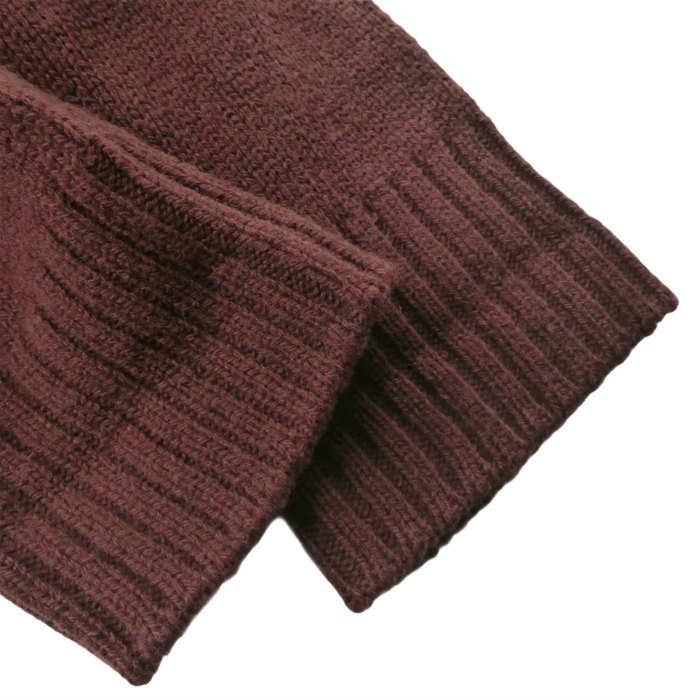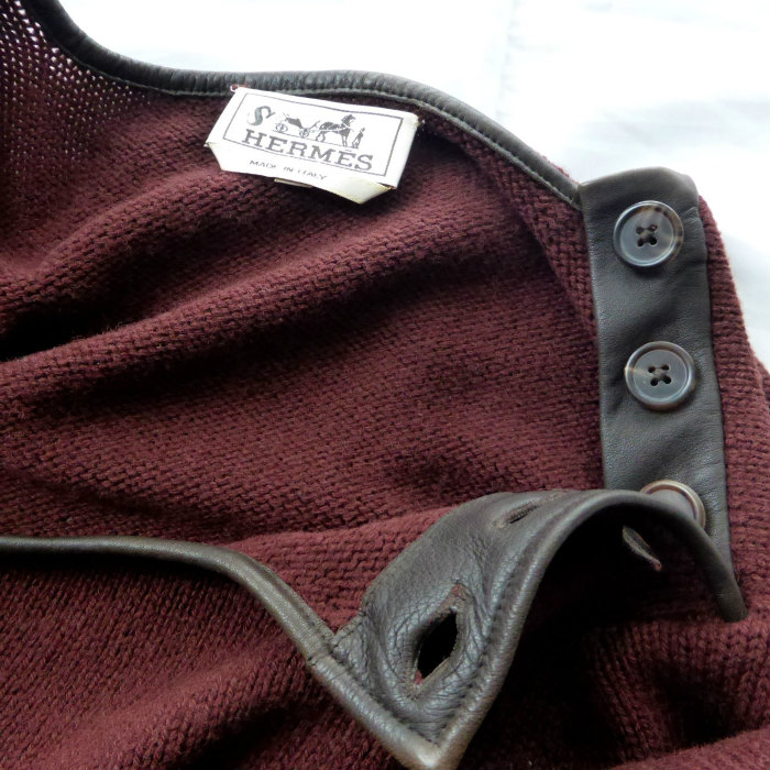 | エルメスのミドルゲージニット。 ブラウン味のあるボルドーカラー。 首元のレザーパイピングやショルダーボタンのデザインが目を惹く一着。 シンプルなデザインが素材の良さを引き立て、高級感あふれる逸品です。 |
