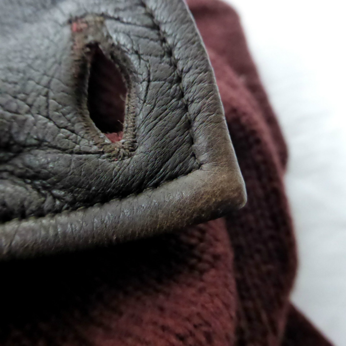 | ニットに伸びや毛羽、レザー部分にシワや色褪せ、タグのほつれかけが見受けられますが、まだまだお使いいただけるお品です。 |