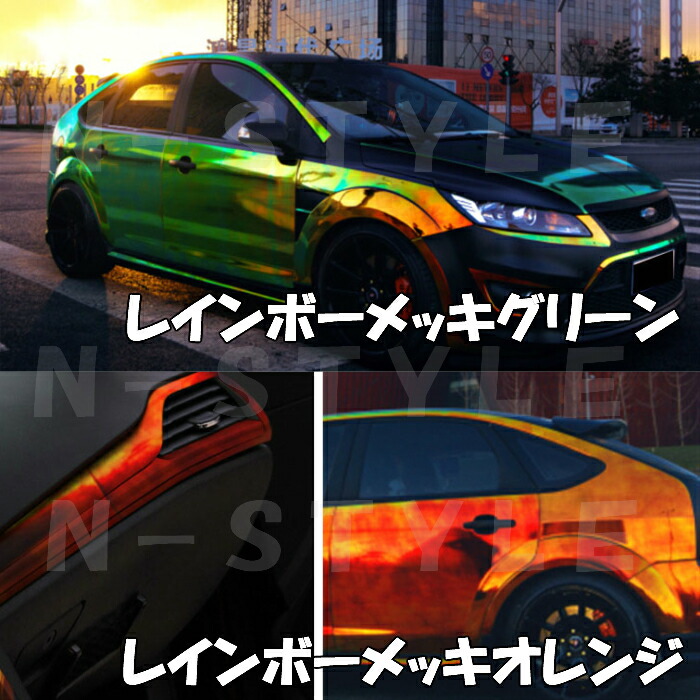 【N-STYLE】カーラッピングシート レインボー メッキ シルバー 135cm×30cm マジョーラ 銀 カーラッピングフィルム 收藏