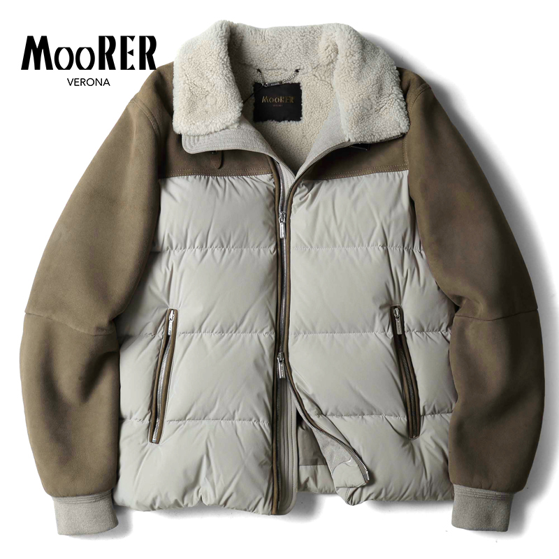 MooRER(ムーレー) / ムートンレザー×撥水ストレッチナイロン異素材コンビスタンドカラーダウンジャケット(DELFO-MKN) [mor2520131-50] 收藏