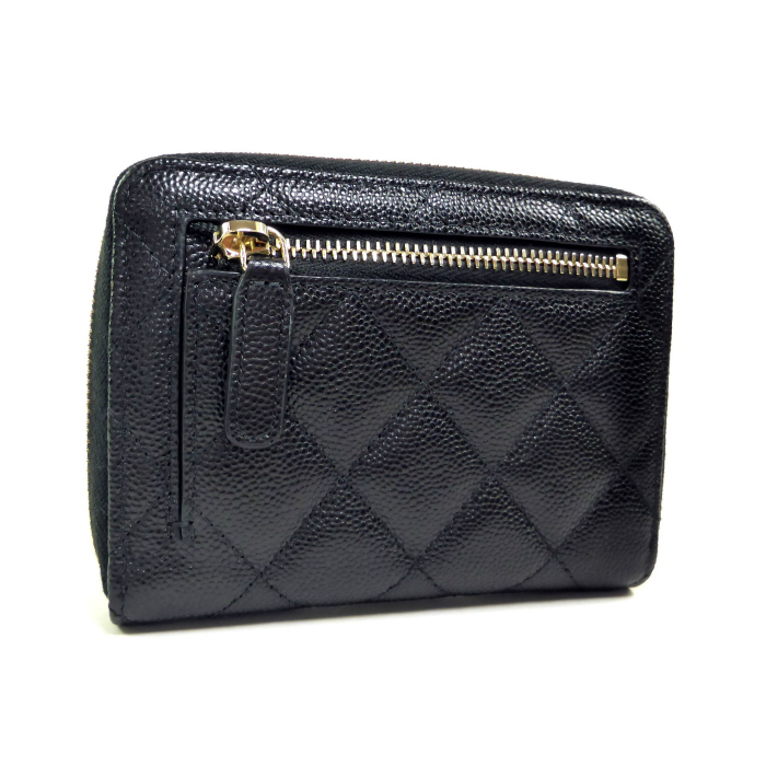 シャネル (CHANEL) キャビアスキン マトラッセ クラシック ラウンドファスナー コンパクト 二つ折り 財布 AP4652 ブラック(新品) 收藏