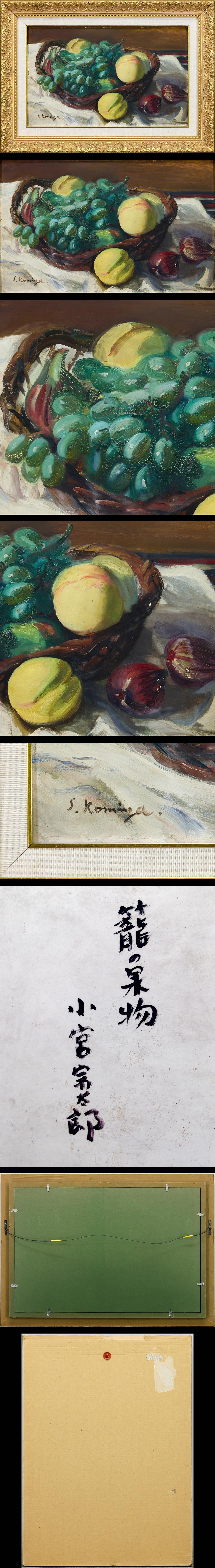 【真作】【WISH】小宮宗太郎「籠の果物」ボードに油彩 10号 籠に盛られた葡萄と果実の量感豊かな静物 #26012662 收藏