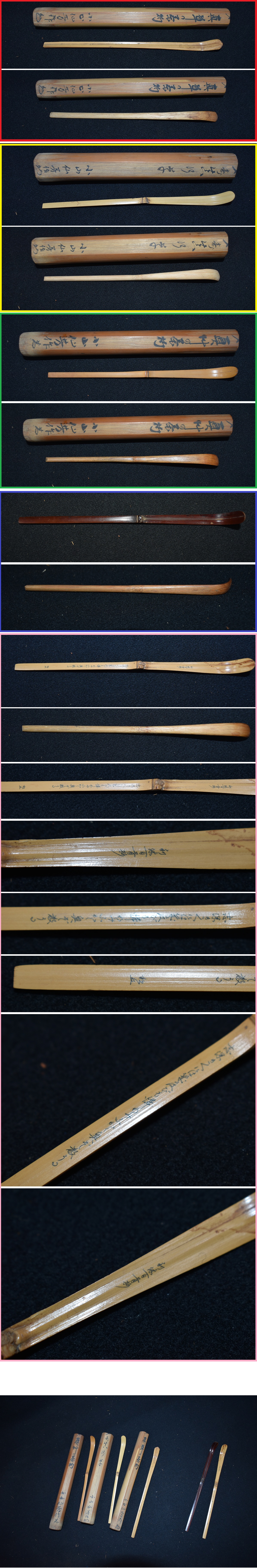 茶杓・5本セット 小山仙芳(花押) 千利休の歌彫・珍品の茶杓・繊細な彫・彫刻 煤竹 時代物 茶道具 煎茶 抹茶 在銘品 收藏