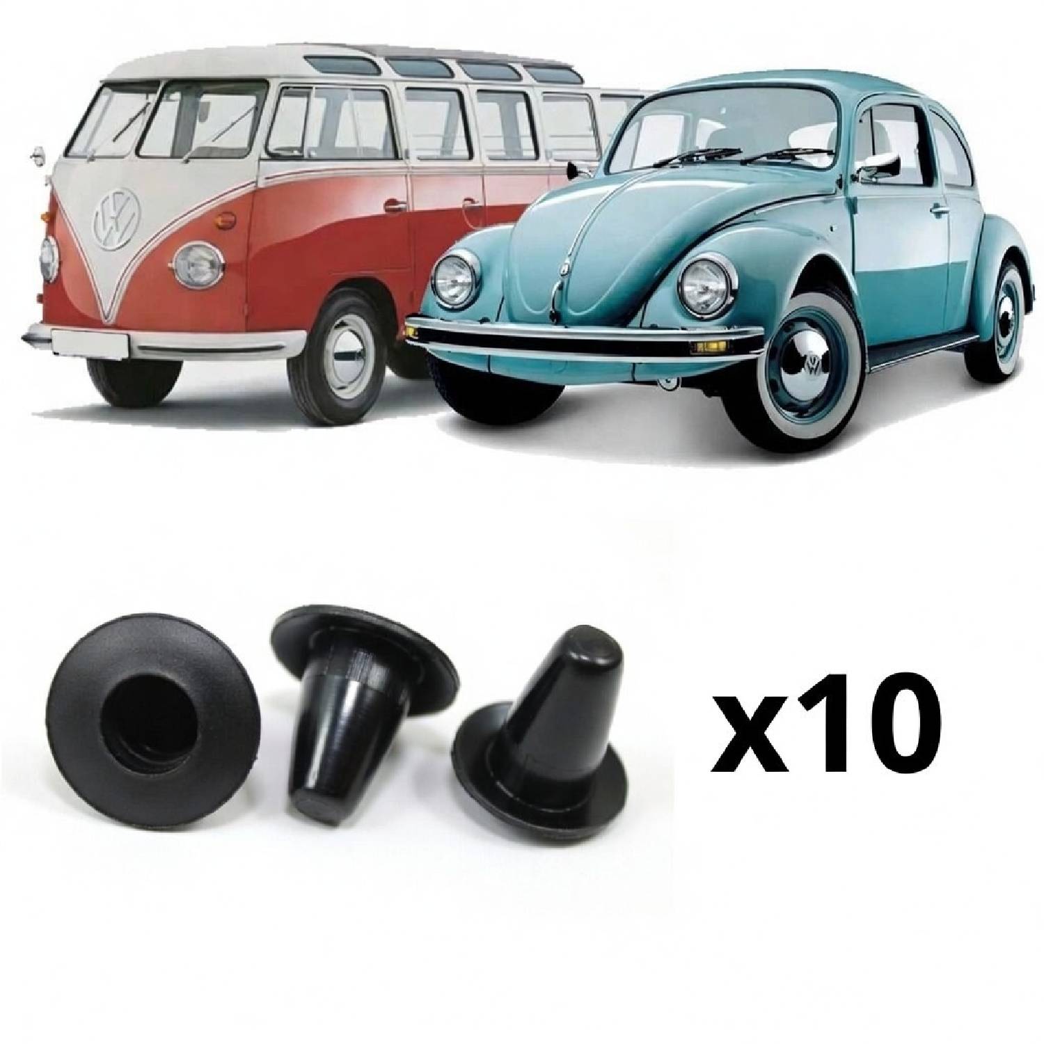 10個セット ドアパネルトリム モール 固定クリップ ゴム ラバー ブラック 黒 VW T1 バグ ビートル T2 バス カルマンギア シング T3 ヴァリアント 1949-1977年式