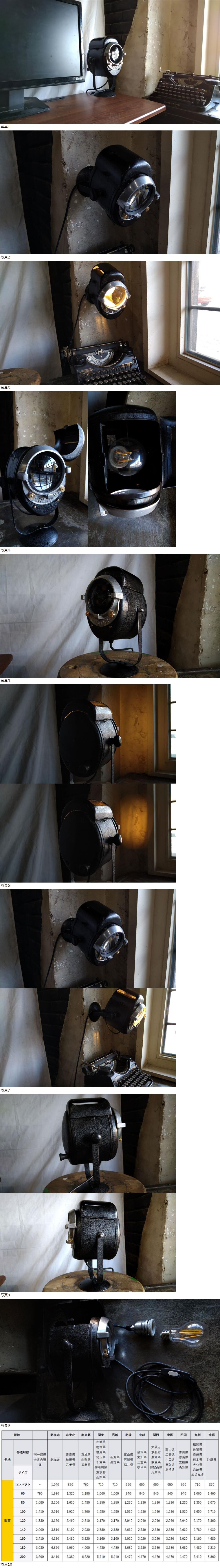 ・写真に写っているランプ以外(テーブルやタイプライターなど)は付属いたしません。