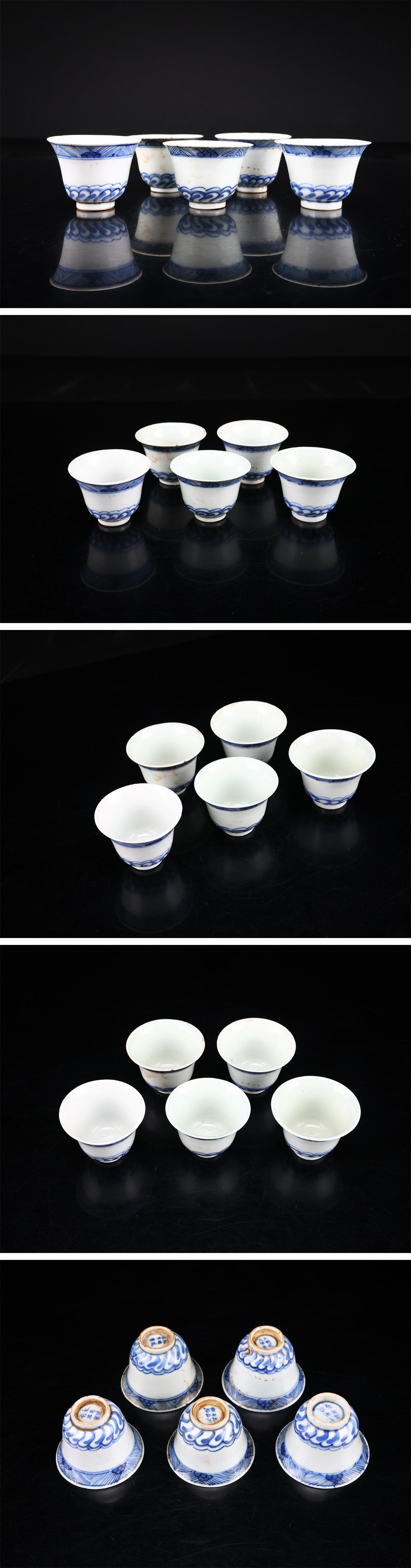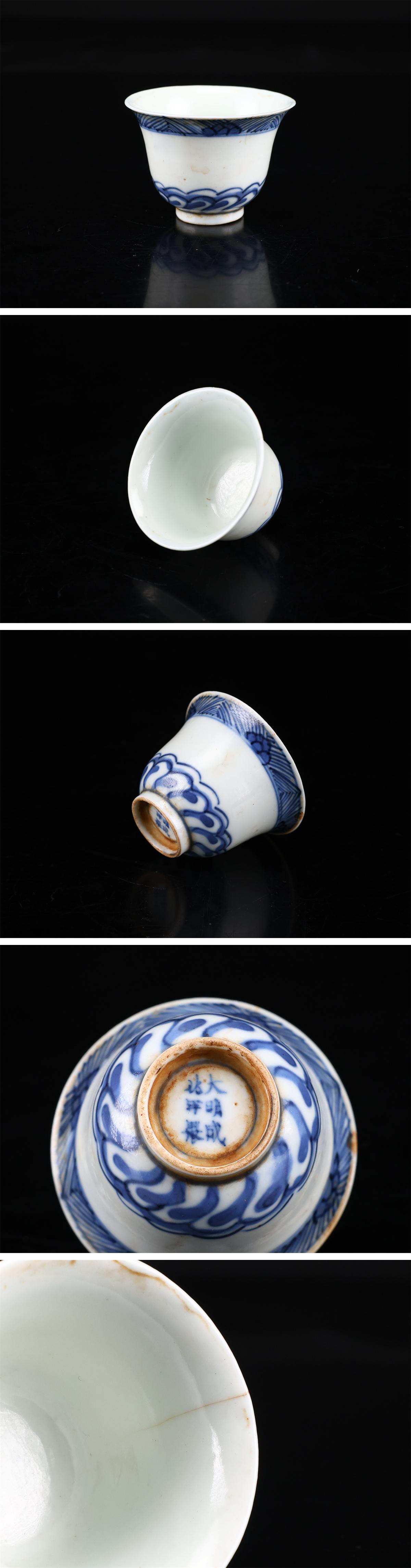 【吉】CQ603 唐物 【大明成化年製】 青花杯 5客セット/箱付 時代のホツニューありN! 收藏