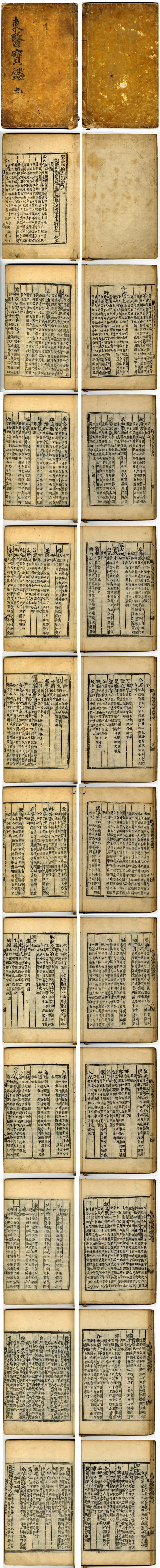 朝鮮版の初版にかなり近い17世紀頃に刷られたものと考え、虫食やシミ、補修歴がない原装のままもので、朝鮮版東医宝鑑は現存数が少なく、日本国内市場に出回る機会も極めて稀な資料的価値の高い古典籍です。※朝鮮刊本の木版本と思われ、近年の複製本ではなく古い刷りの古書資料として見ておりますが、刊年・版次の断定はしておりません。