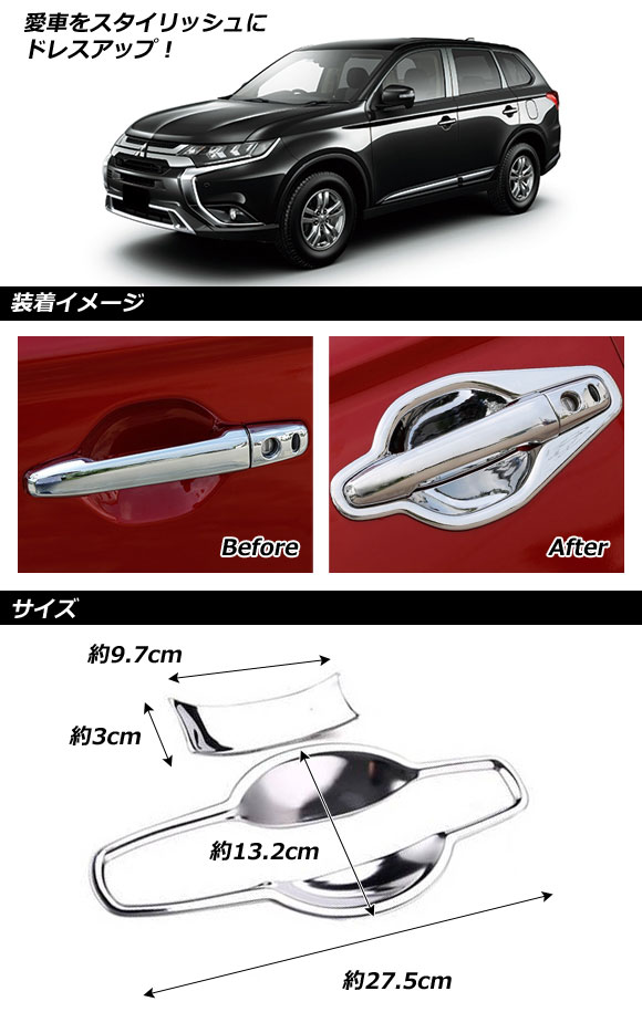 ドアハンドルインナーカバー ミツビシ アウトランダー GF7W/GF8W MC後 2015年06月~ 鏡面シルバー ABS樹脂製 AP-XT389 入数:1セット(8個) 收藏