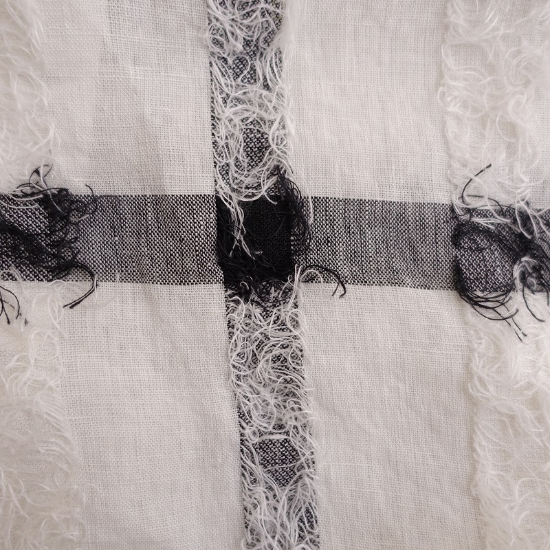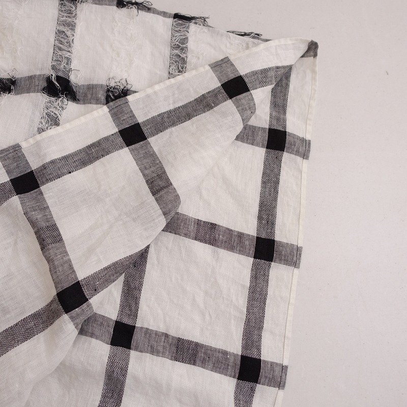 フレームワーク Framework *PONTETORTO ワイドチェックプルオーバー*ポンチョ風Vネックリネン黒×白フリンジ(m4-2407-163)【62H42】 收藏