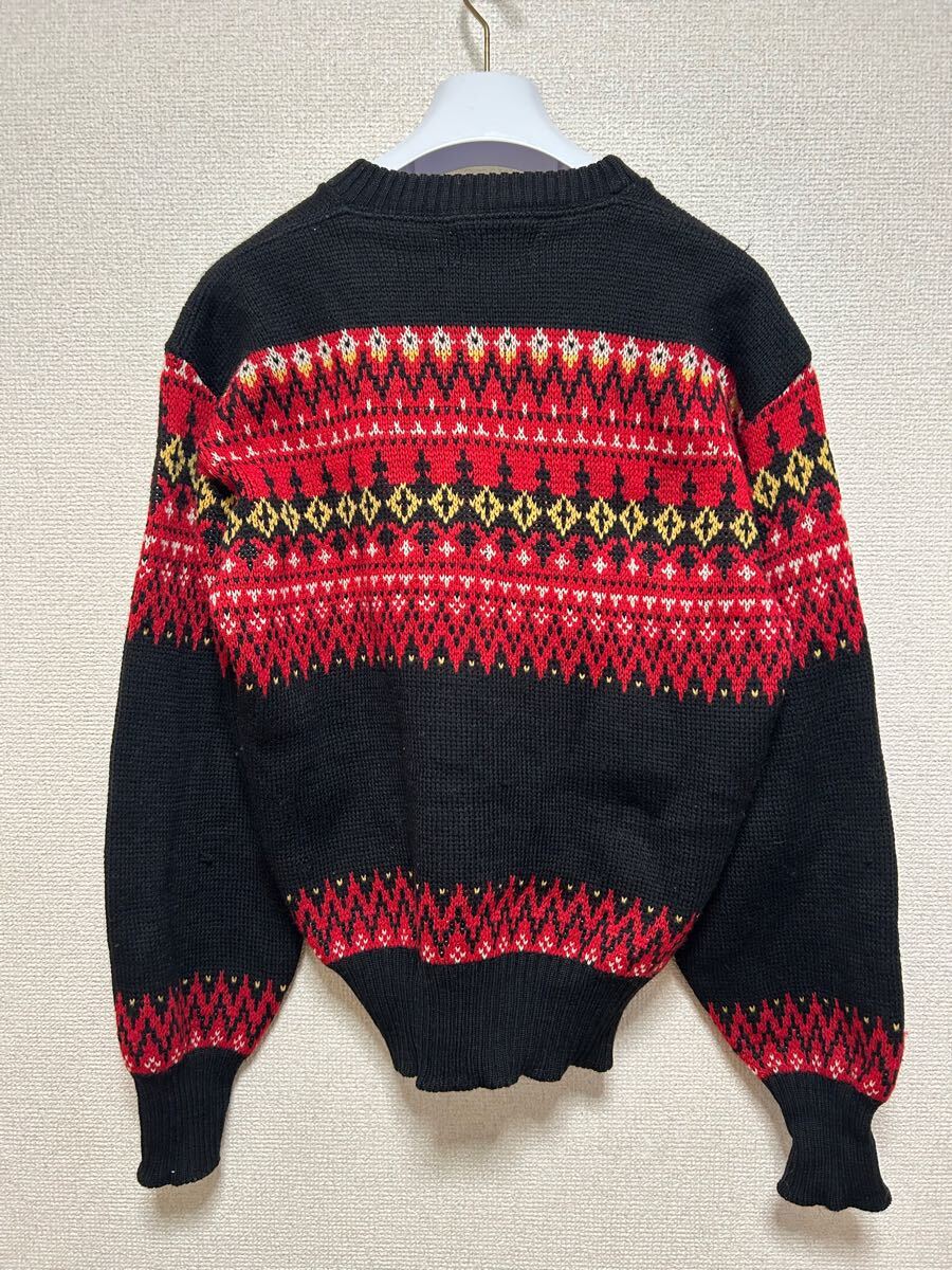 50s Robert Bruce ロバートブルース ノルディックセーター ウールニットセーター USAヴィンテージ 黒×赤 L /雪柄 收藏