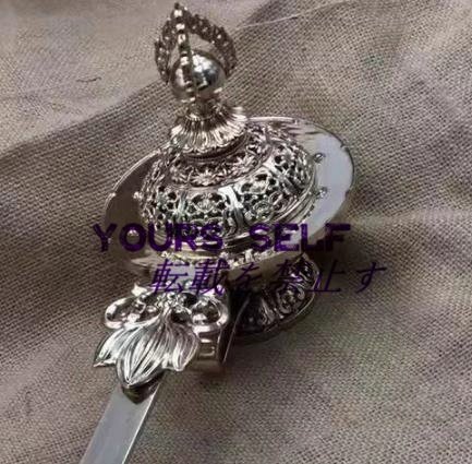 柄香炉 密教法具 寺院用仏具 摩尼寶珠柄香炉 真鍮製 密教で使われる仏具長さ39.5cm 收藏