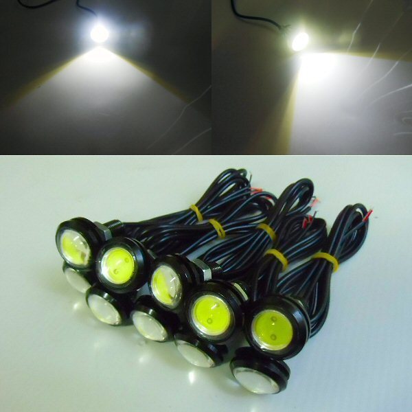 12V 激白 LED COB 18mm イーグルアイ 埋め込み 丸型 牛目 デイライト スポットライト 10個 セット 白 ホワイト 黒 ブラック バイク 收藏