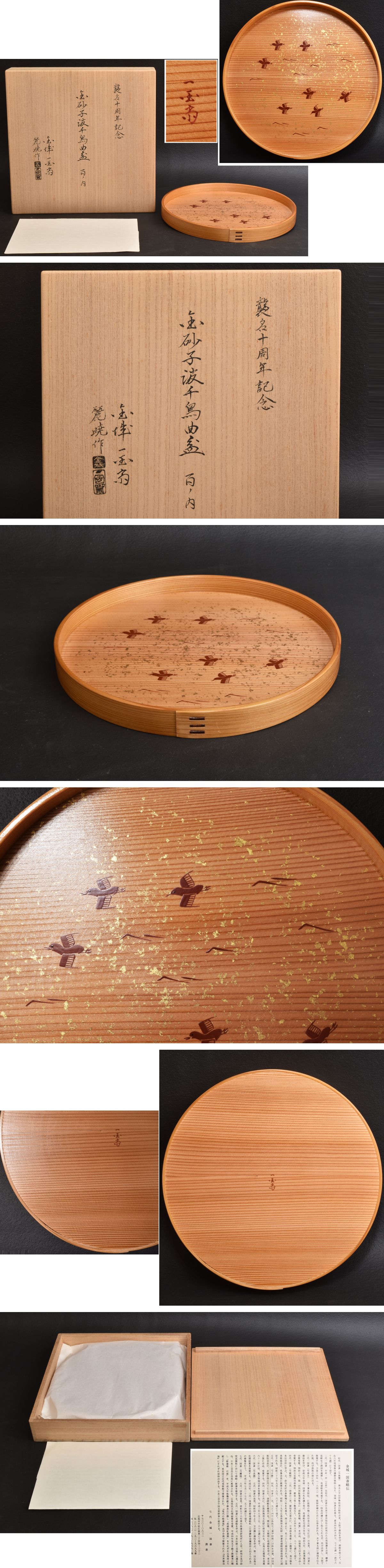 5496 金城一国斎(麗暁作)国砂子波千鳥曲盆 百ノ内 襲名十周年記念 共箱 收藏