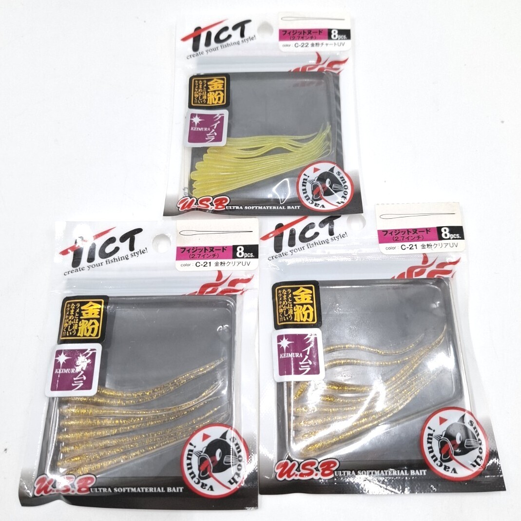 TICT ティクト ワーム フィジットヌード 2.7インチ 金粉クリアUV 金粉チャートUV ケイムラ ウルトラソフトマテリアルベイト 收藏