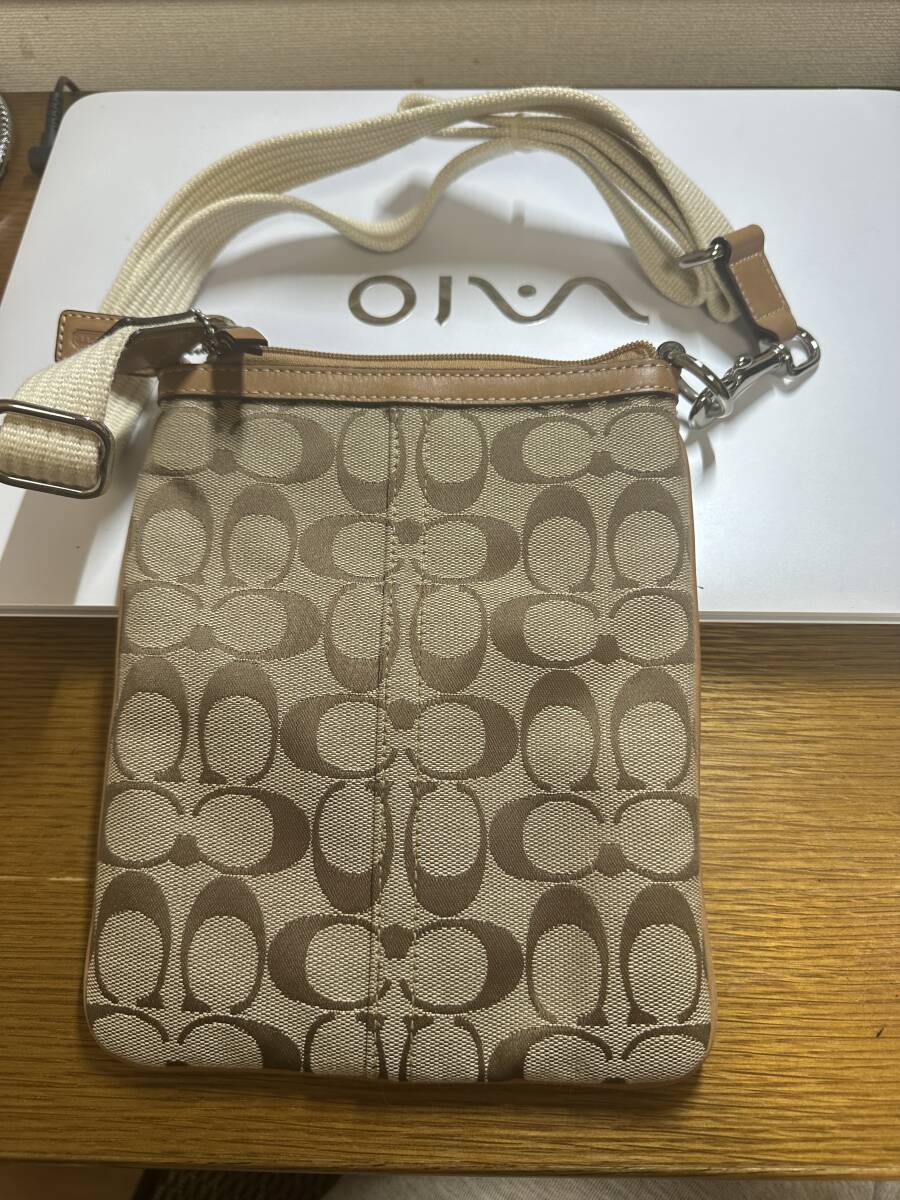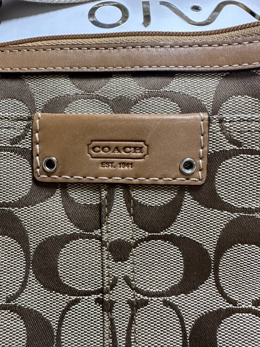 COACH コーチのショルダーバッグです。レディースかと思います。かなり家内が使用したので、多少、使用感はあります。横が17センチ強、縦が22センチ弱。