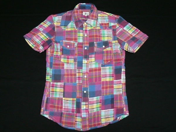| 新品未使用。日本のデザイナーズ・ブランド「TAKEO KIKUCHI タケオ・キクチ」のアメリカン・カジュアルをベースに洗練されたトレンド感を取り込んだ人気カジュアル・ブランド「TK」のコットン・チェック生地を縫い合わせたショート・スリーブ(半袖)のパッチワーク・ウエスタン・シャツになります。サイズは2(MEDIUM)でカラーはピンク・チェックで古布を再現するためにスレや色落ちなどの中古加工を施した数種類のコットン・チェック生地を組みあわせたパッチ・ワーク・シャツになります。(品番170-88361、COL.972、定価7,600円、税込み8,360円)。ピンクを基調とした風合いの良いコットン・チェック素材を丁寧に縫い合わせたパッチ・ワーク・生地を使用した涼感のあるサマー・シーズン用のウエスタン・シャツになります。オーソドックスなウエスタン・ワーク・デザインでフロントとバックにウエスタン・ヨーク(背面はアンブレラ・ヨーク)、ボタンは丸形パーメックス・ボタン(YKK BELNAP)、フロント両胸にフラップ付ポケット、着丈の長すぎないテーラード・テールのすっきりとしたシルエットになります。素材表示は綿100%。実寸は着丈(衿下より)約70cm、肩幅(直線で)約43cm、身幅(腋下で)約48cm、袖丈約21.5cmとなります。(素人採寸ですので多少の誤差はお許し下さい。)洗いざらした風合いを再現したウォッシュ加工がほどこされており、軽くソフトな風合いに仕上がっています。 | |||