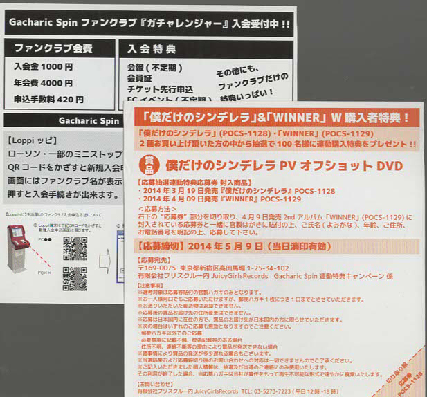 ★Gacharic Spin ガチャリック・スピン|僕だけのシンデレラ|シングル|運命さえも変える言葉 さよならチェリー|POCS-1128|2014/03/19 收藏
