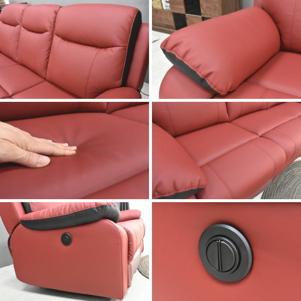 新品 電動リクライニングソファ3人掛けソファー OKIN社製モーター RD×BK高級3Pソファ快適おしゃれ快適モダン北欧 家具:NW44-13B-ZS-KC 收藏