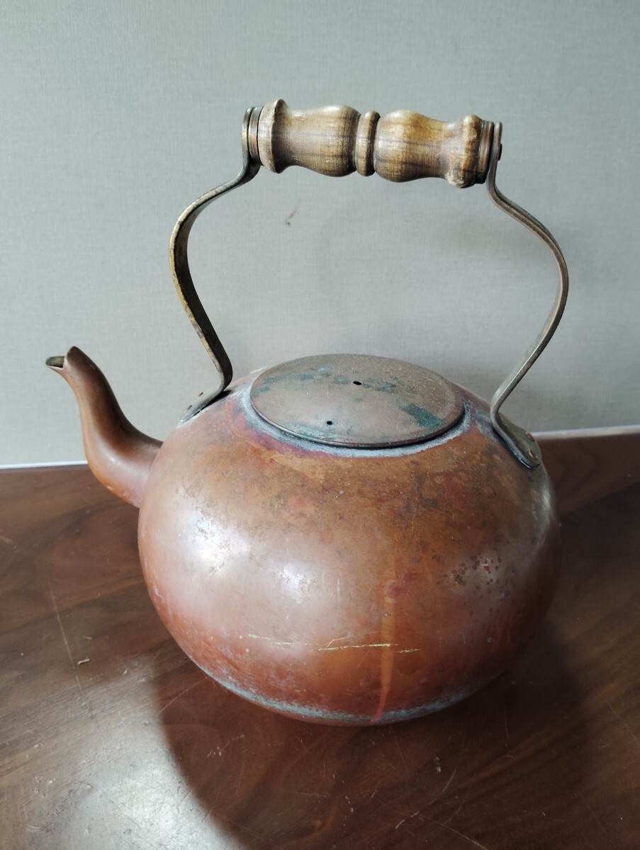 アンティーク時代物朱銅製のやかんです