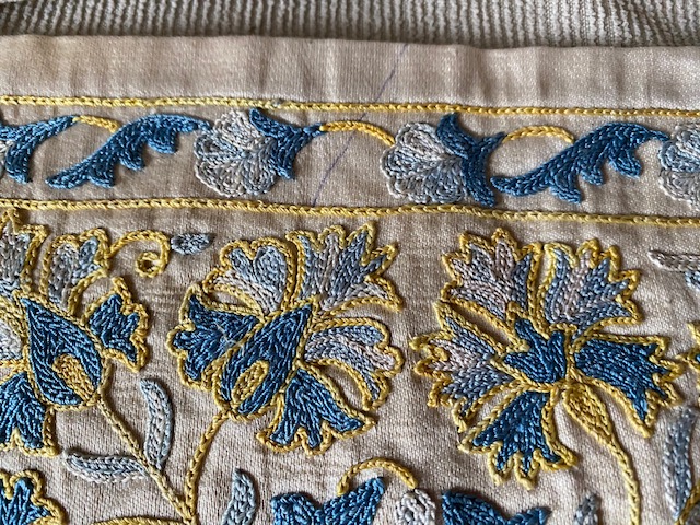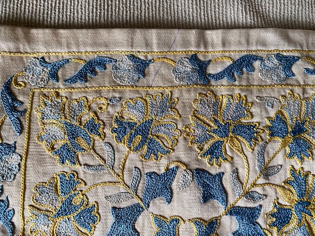 大変貴重 シルクの手刺繍スザニ のクッションカバー