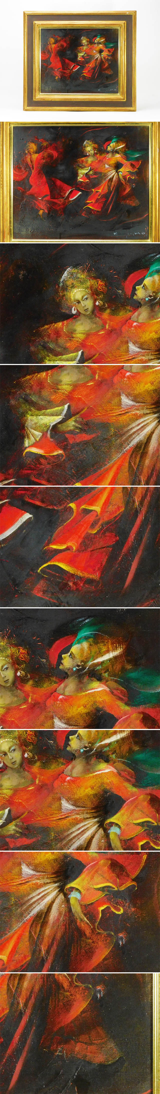 森田訓司 踊るジプシー娘(美人画)F8 油彩 額装 1981年 グラン・ショミエール 太平洋美術展 国画展 独立美術展 s25060206 收藏