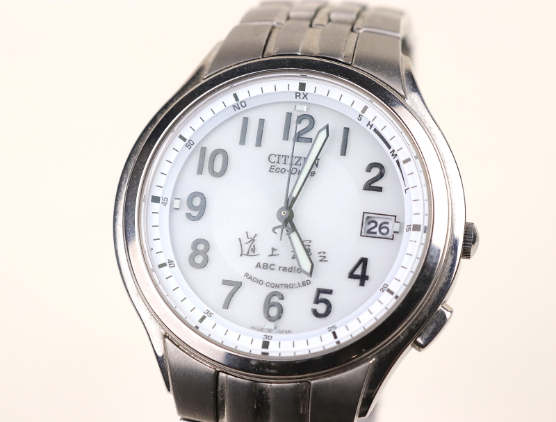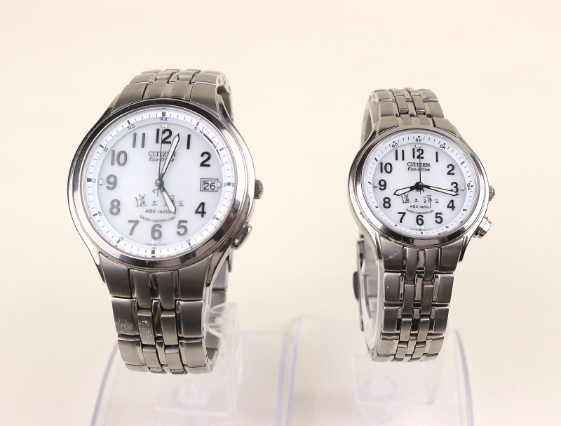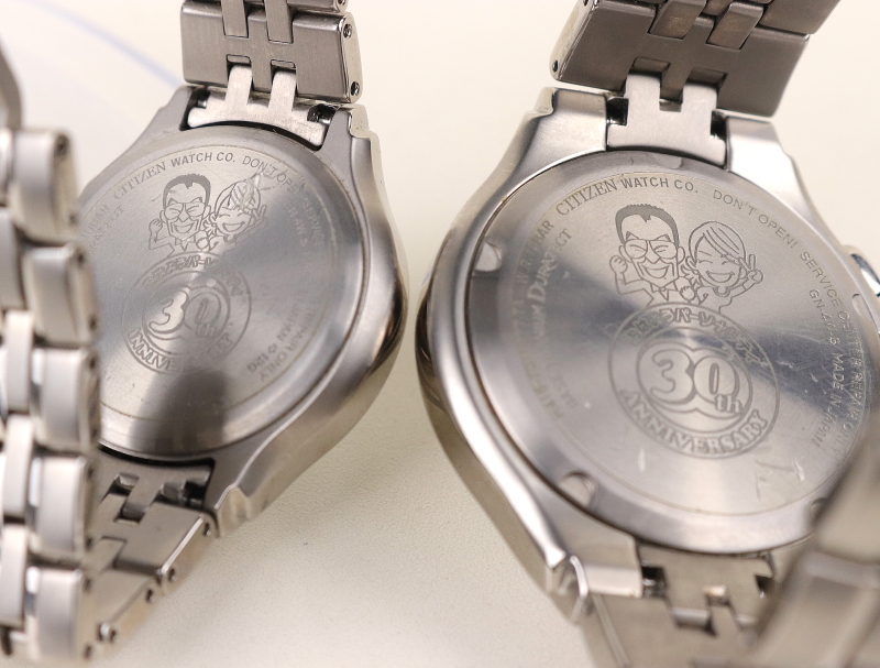 9491■ CITIZEN シチズン Eco-Drive エコドライブ 腕時計 2点 道上洋三 ABCラジオおはようパーソナリティ30th記念刻印 ケース付 收藏