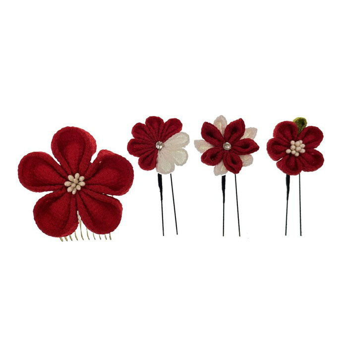 | 商品説明 | ・・上品な光沢感のある生地を使用し、落ち着いた色合いでまとめた大人可愛いつまみ細工の髪飾りセット。 ・大花1点(コーム仕様)と、小花3点(Uピン仕様)の4点セットで、まとめ髪に華やぎとやさしさを添える。 |