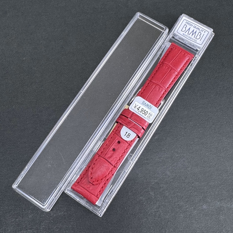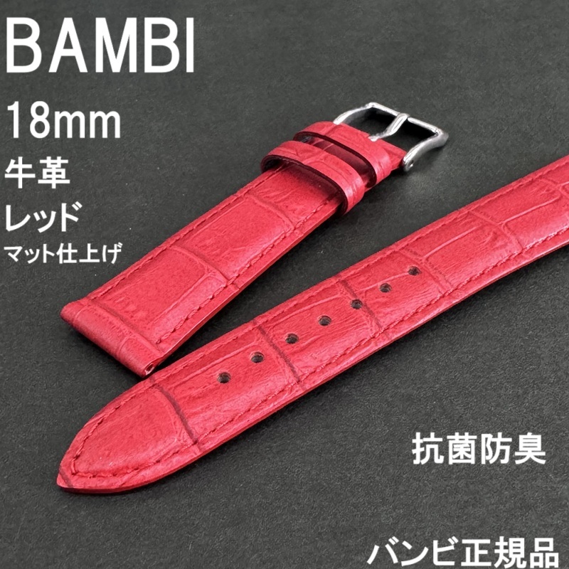 バネ棒付 送料無料★特価 新品★BAMBI 時計ベルト 牛革バンド 18mm レッド 赤 マット仕上げ ツヤ消し 抗菌防臭★バンビ正規品 定価4,950円 收藏