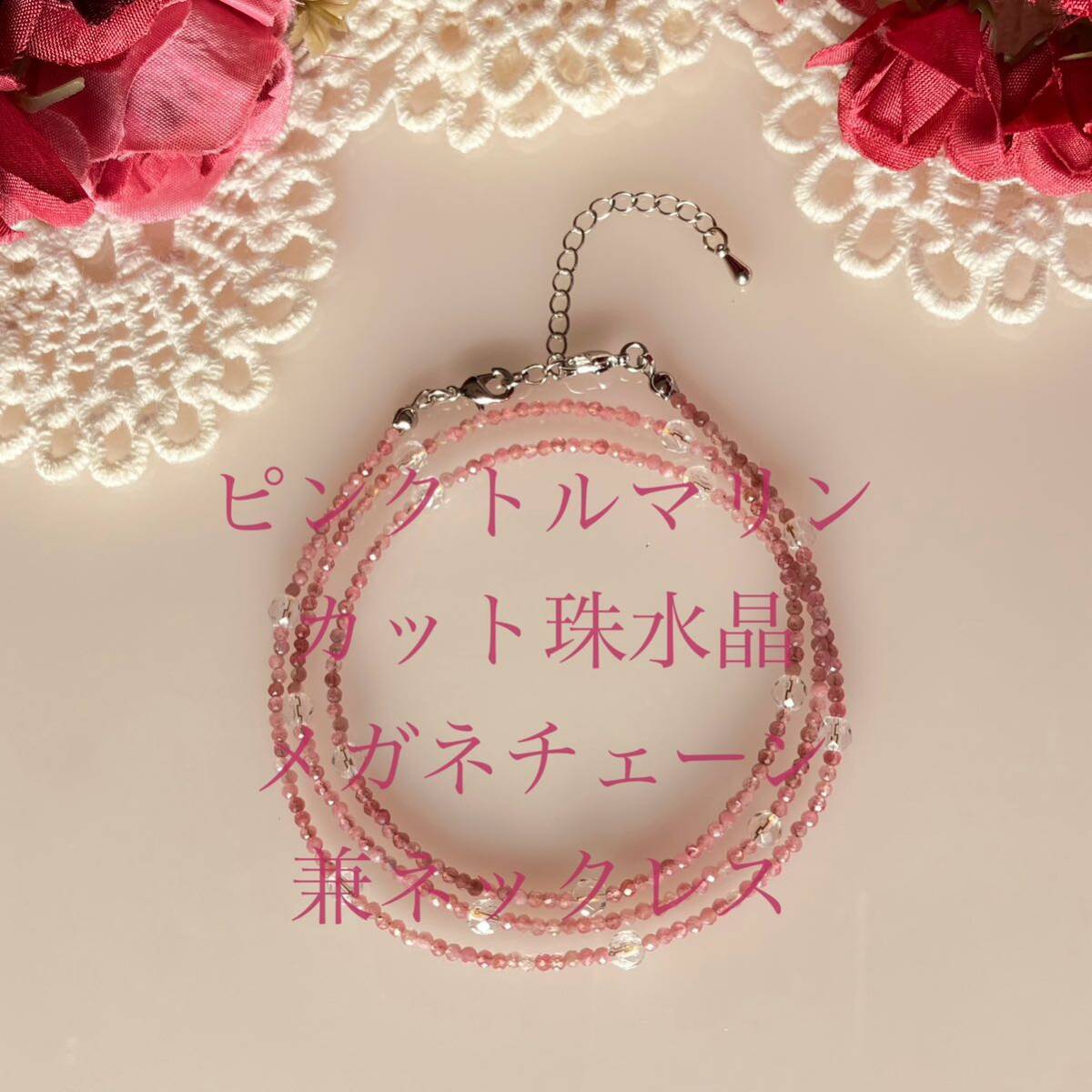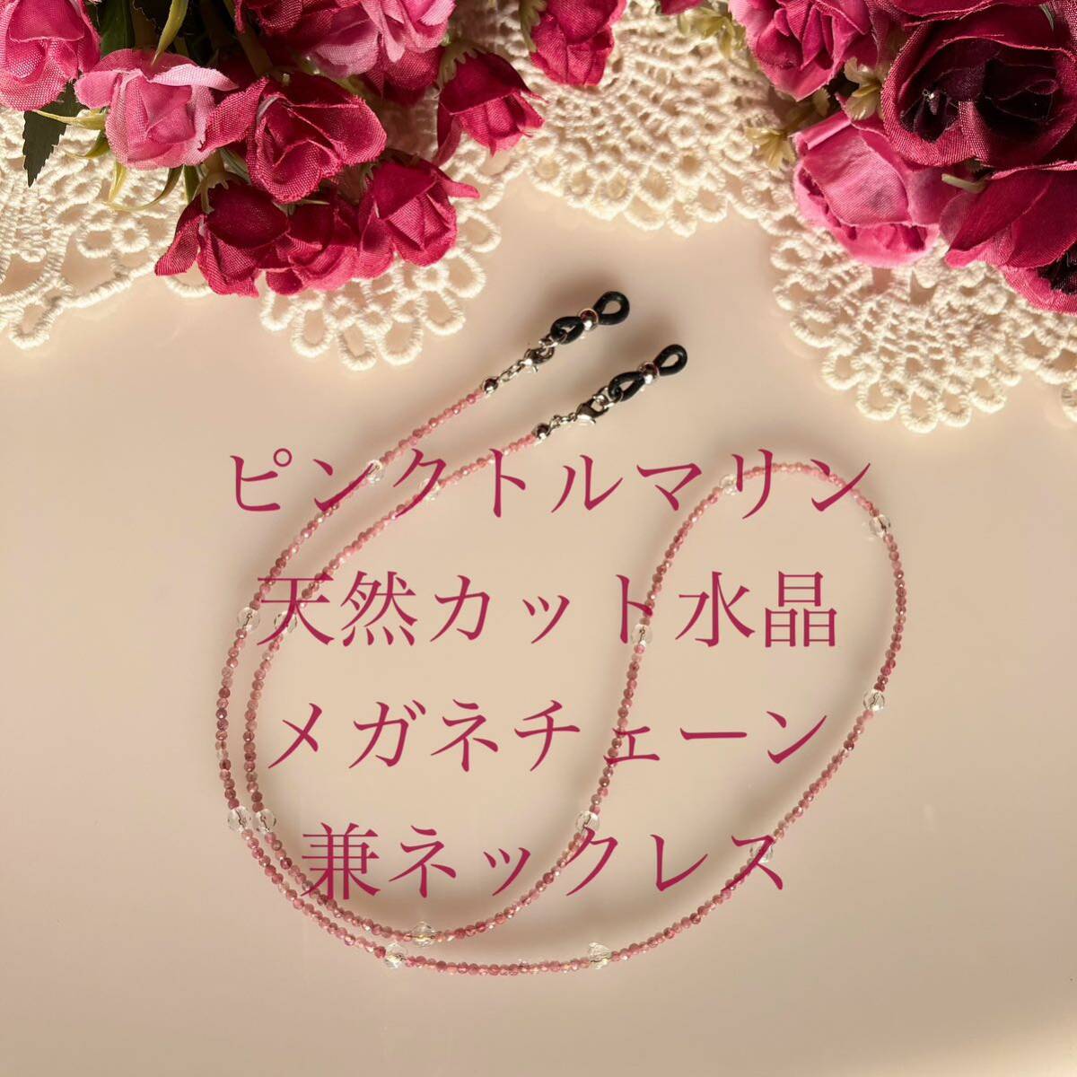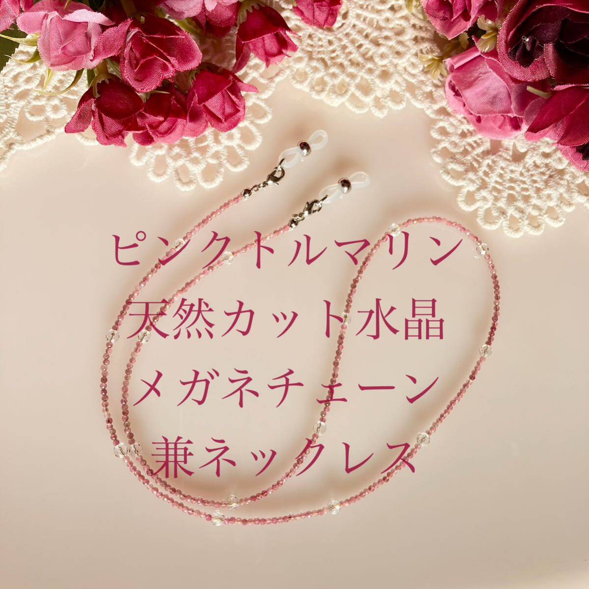 天然石ピンクトルマリンxカット珠水晶のメガネチェーン兼ネックレス シルバーx白 收藏