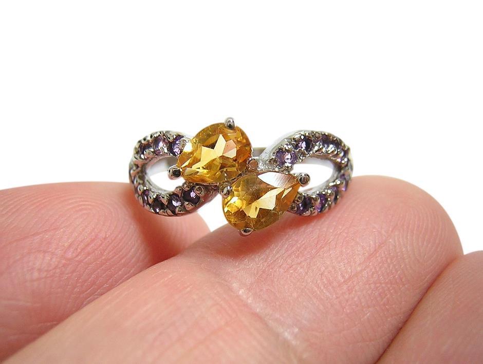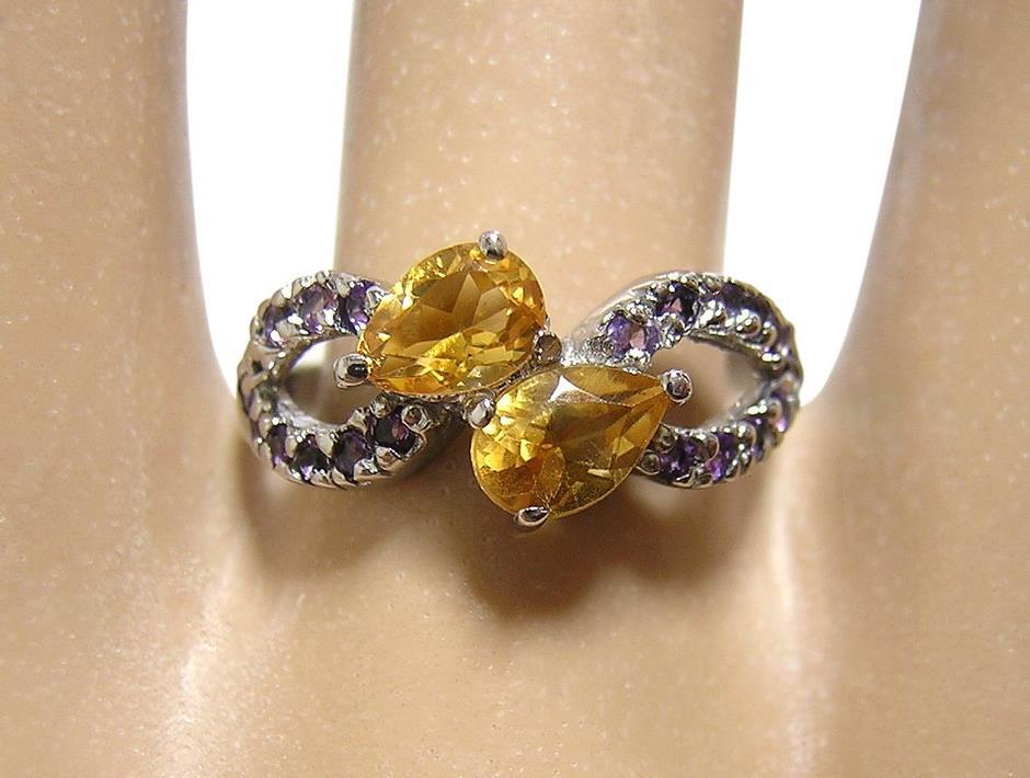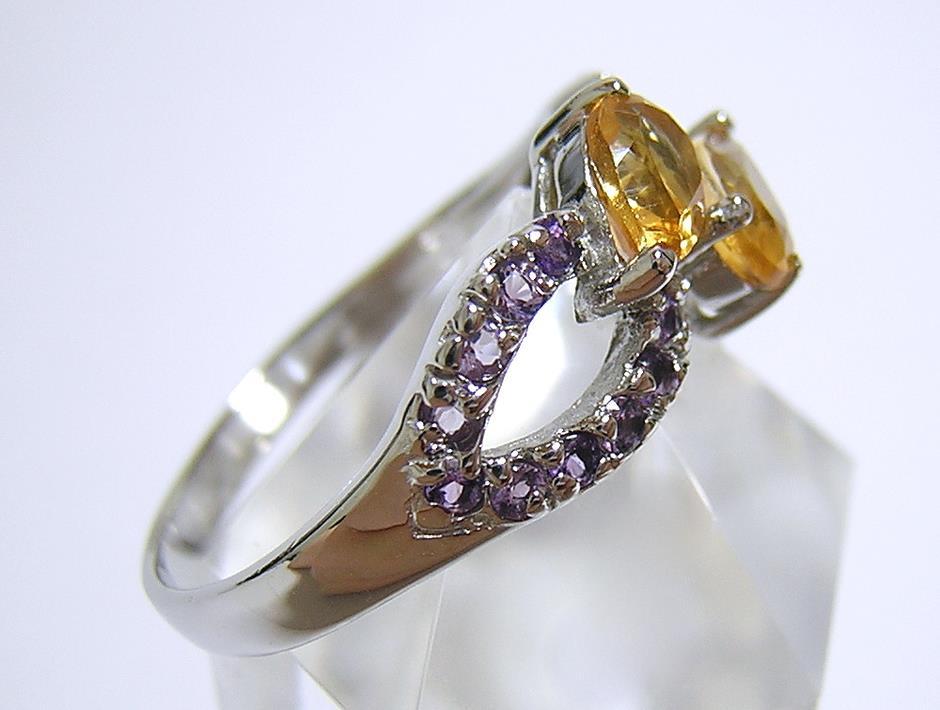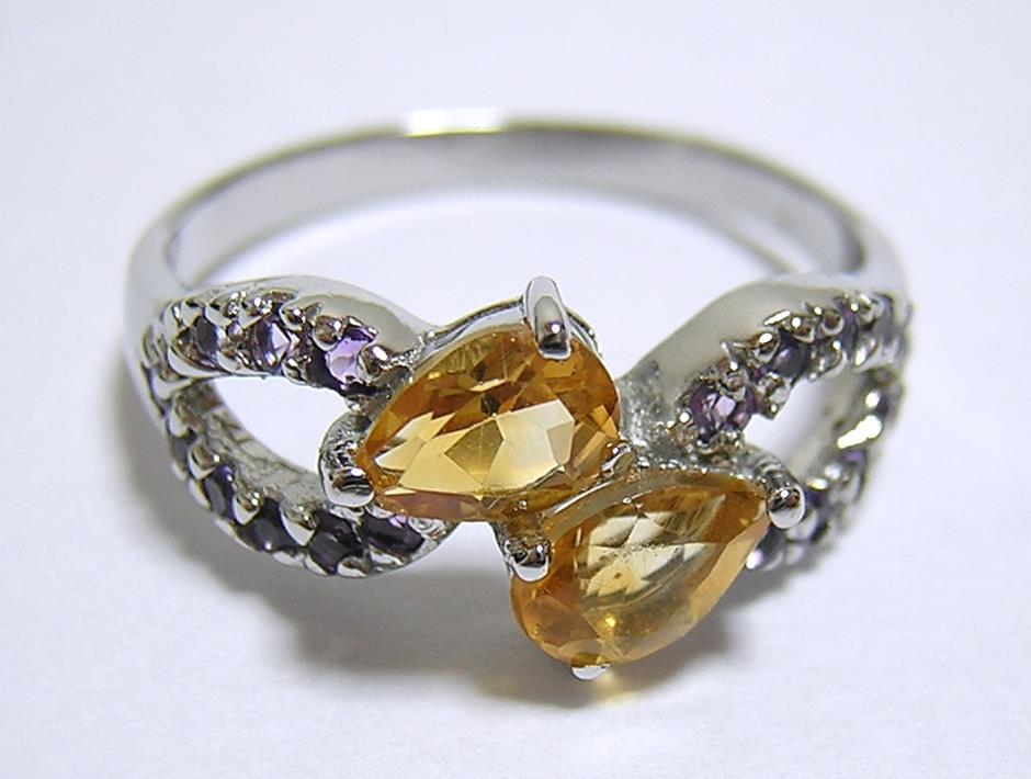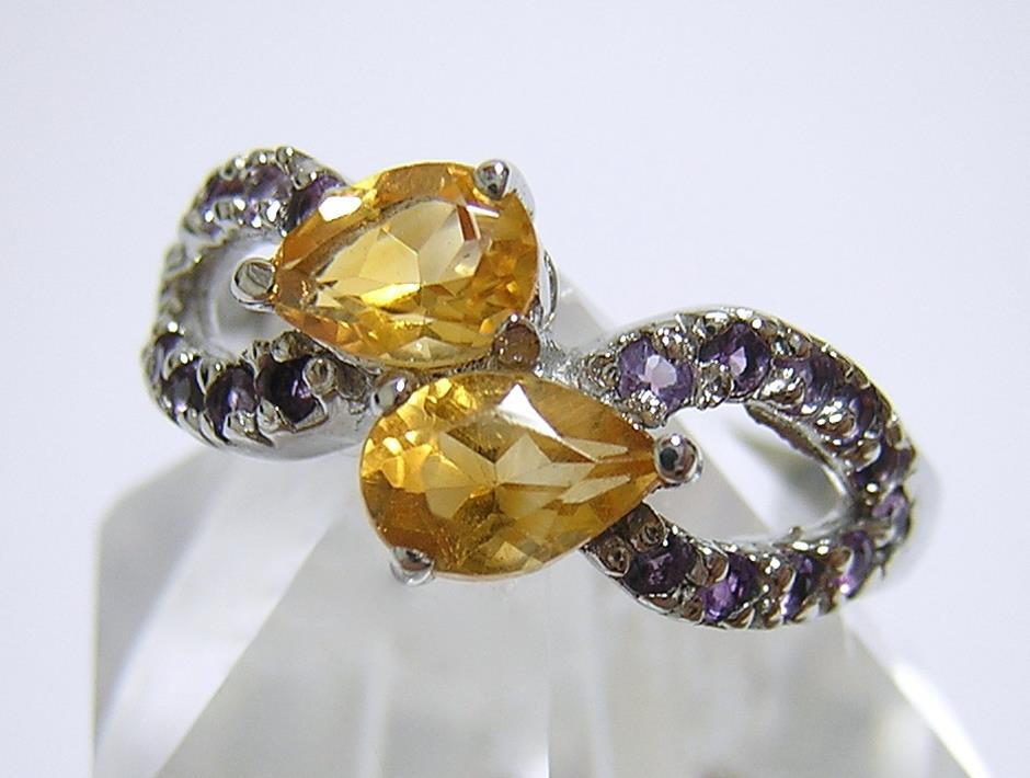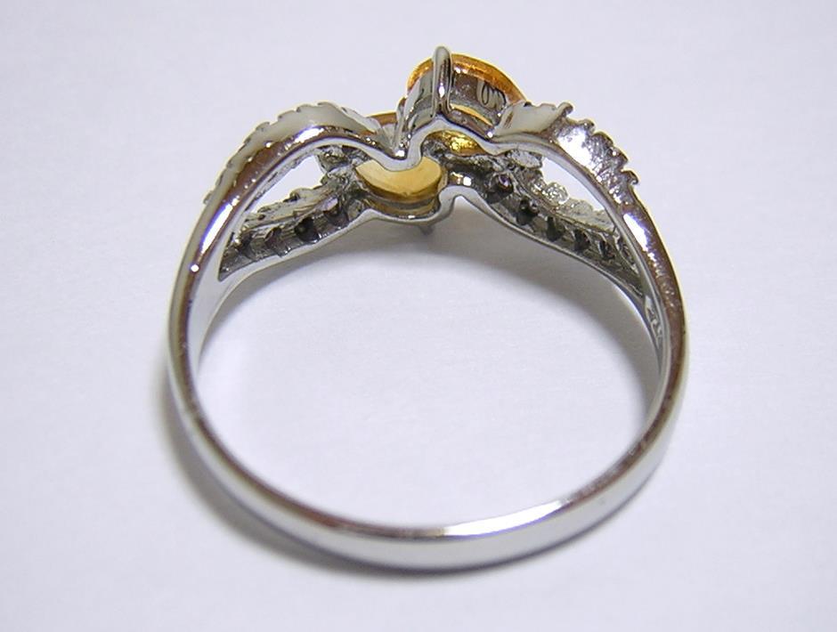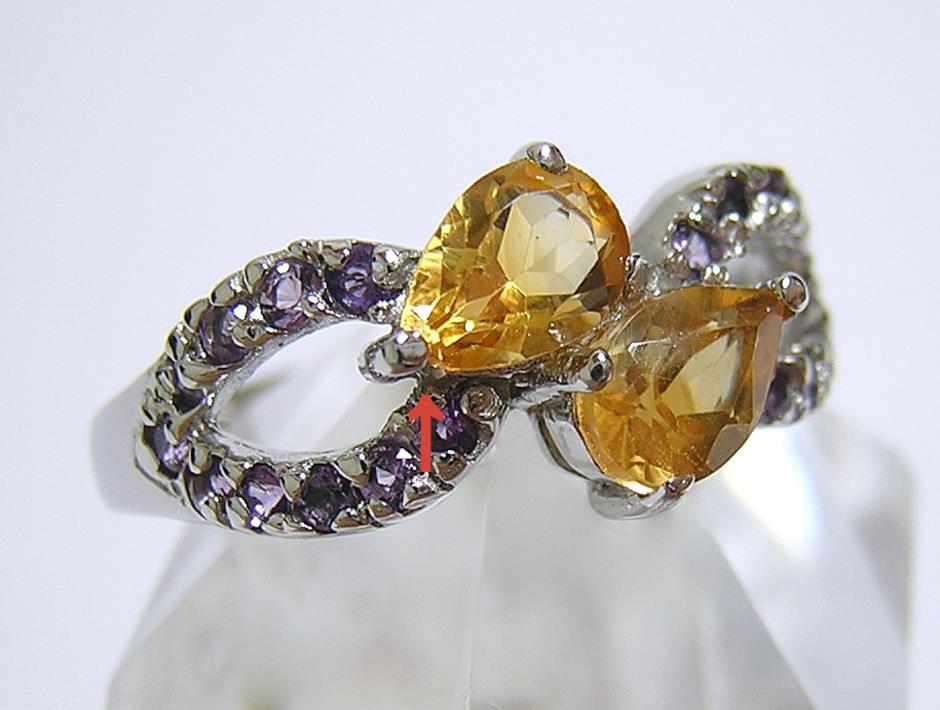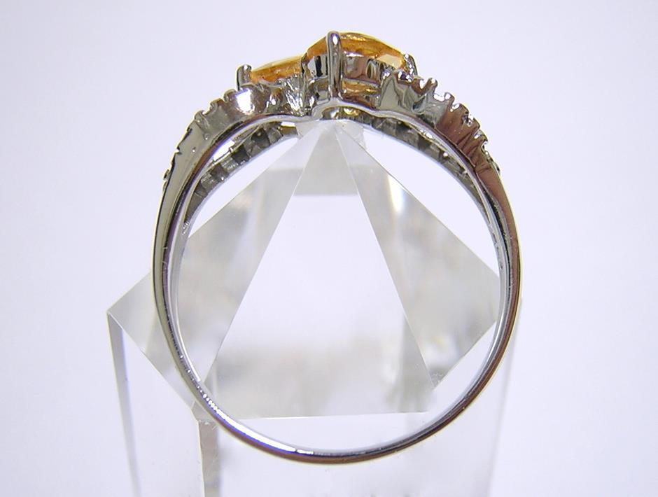 天然シトリンとアメジストを使用したデザインリングです。 片方のシトリンの尖っている方(爪の部分)にカケがありますので、画像でご確認くださいませ。 【中石】天然シトリン 【産地】ブラジル産 【処理】非加熱 【カット】ペアファセットカット 【脇石】天然アメジスト 【重さ】2.2g 【サイズ】15.5号 (お直しは承れません) デザイン部:縦8mm×横19mm 【素材】シルバー925 (14金ホワイトゴールド仕上げ) 【刻印】925 【状態】新品 ※地金部分に製作時からの微細な小傷やスレがあります。 |