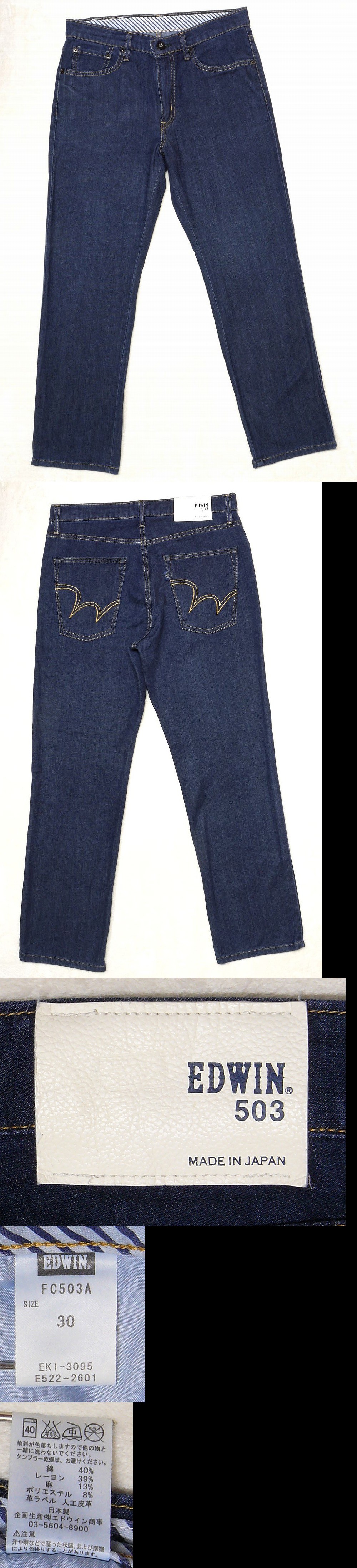 ☆夏用 エドウイン(EDWIN)FC503A クール メンズデニムジーンズ ストレッチ ストレート W30 実寸W80センチ 股下68.5センチ 收藏