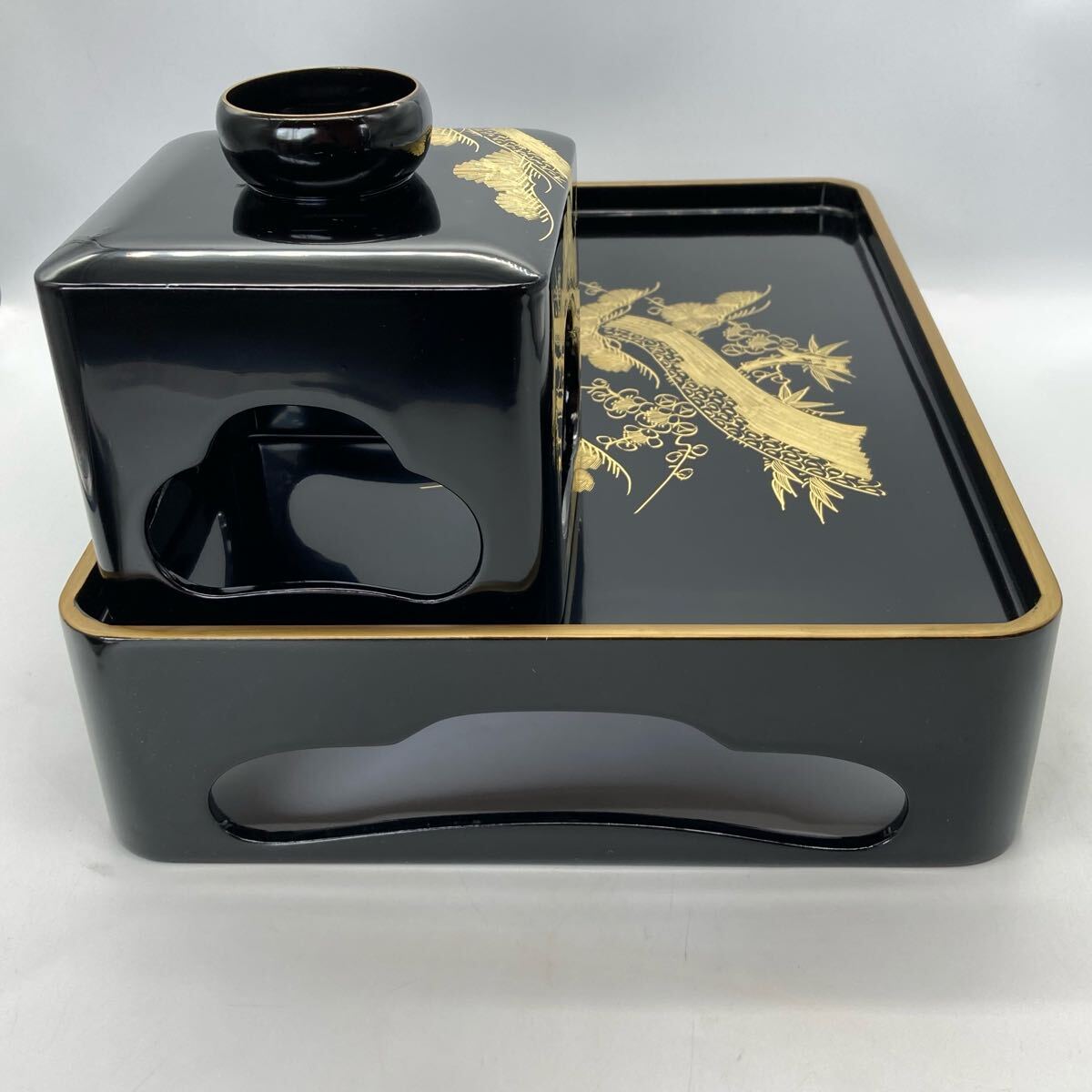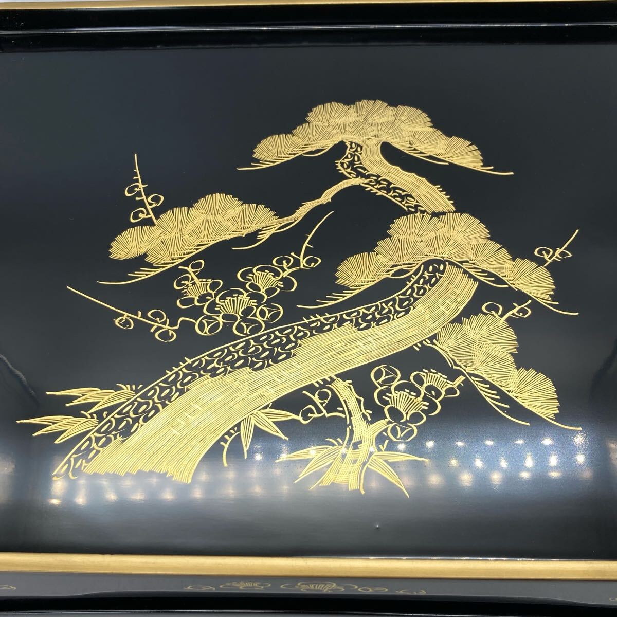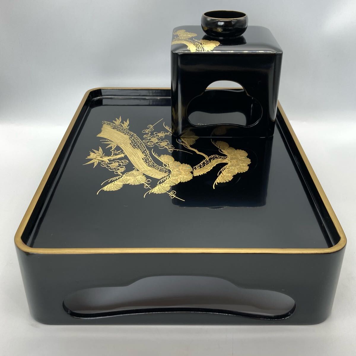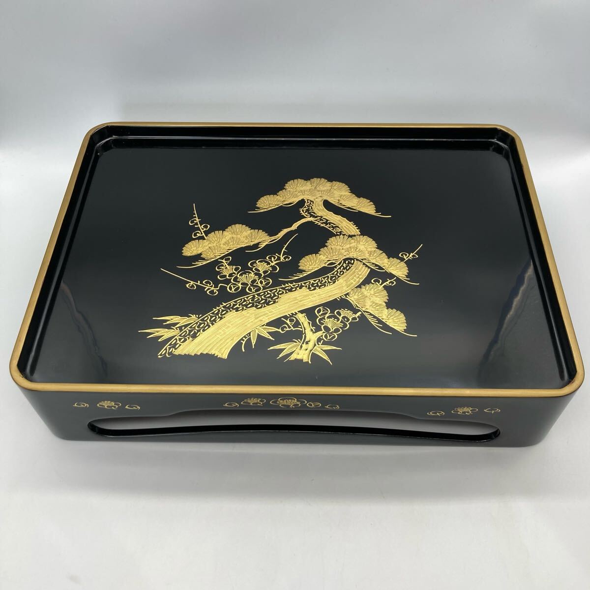 M0911702N 会津塗 漆器 天然木 膳 お屠蘇台 盃台 漆芸 松竹梅 お祝い うるし塗 漆ぬり 会津漆器 伝統工芸 工芸品 当時物 中古品 現状品 收藏