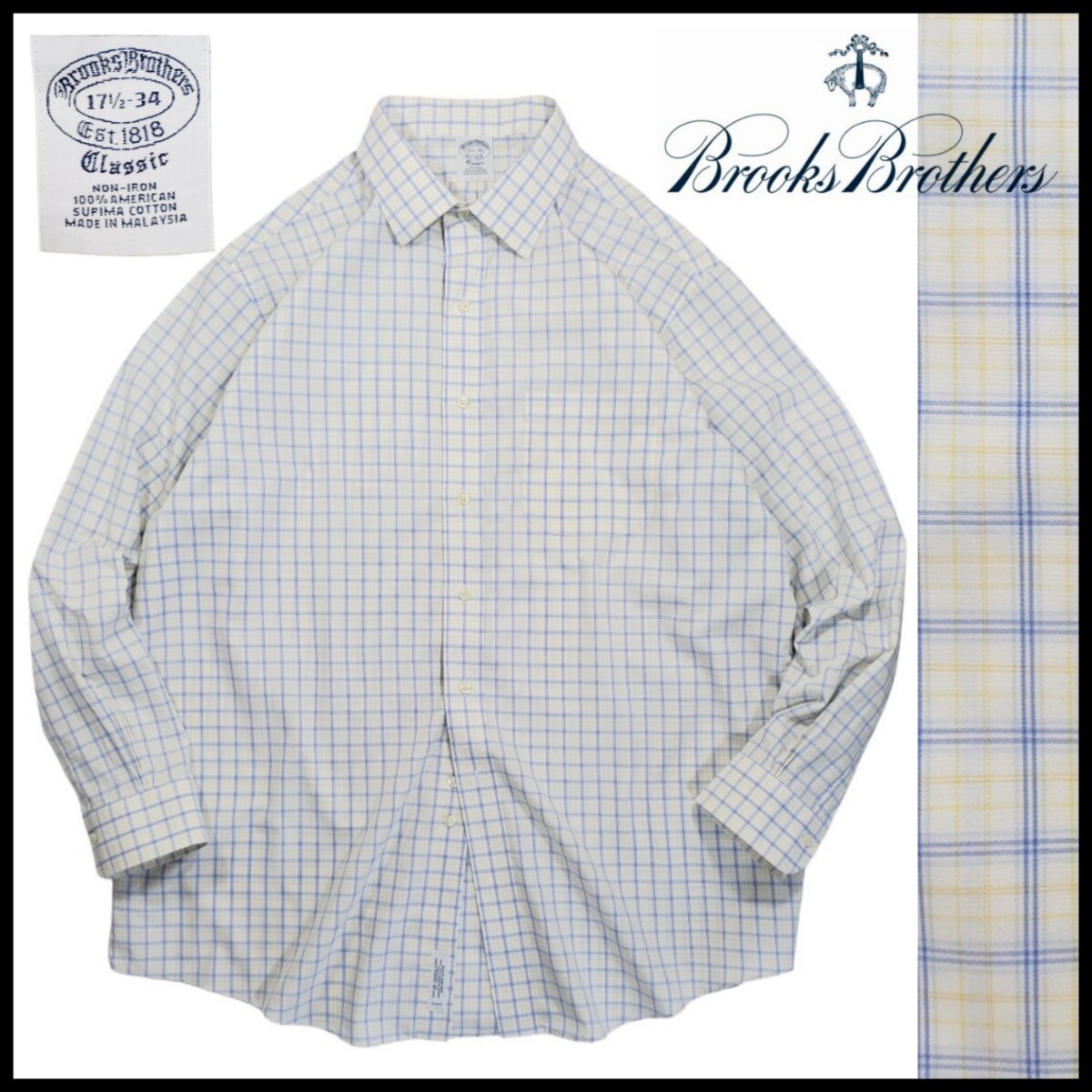 w306/美品 古着 BROOKS BROTHERS Est1818 Classic 長袖シャツ 17 1/2 - 34 チェック ブルックスブラザーズ 洗濯プレス済 ネコポス可 收藏