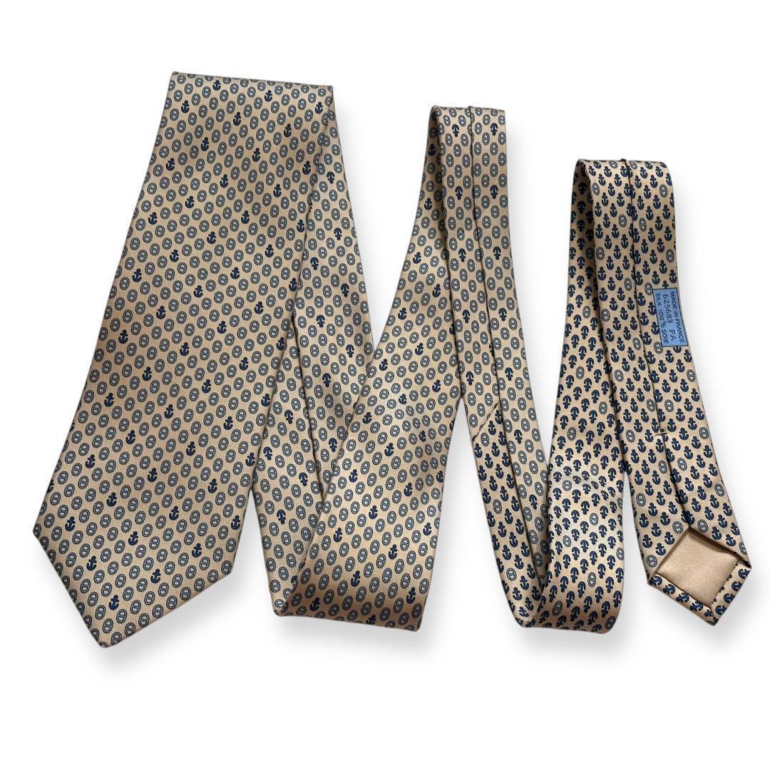 極美品 HERMES ネクタイ エルメス シェーヌダンクル 碇 マリン 夏 收藏
