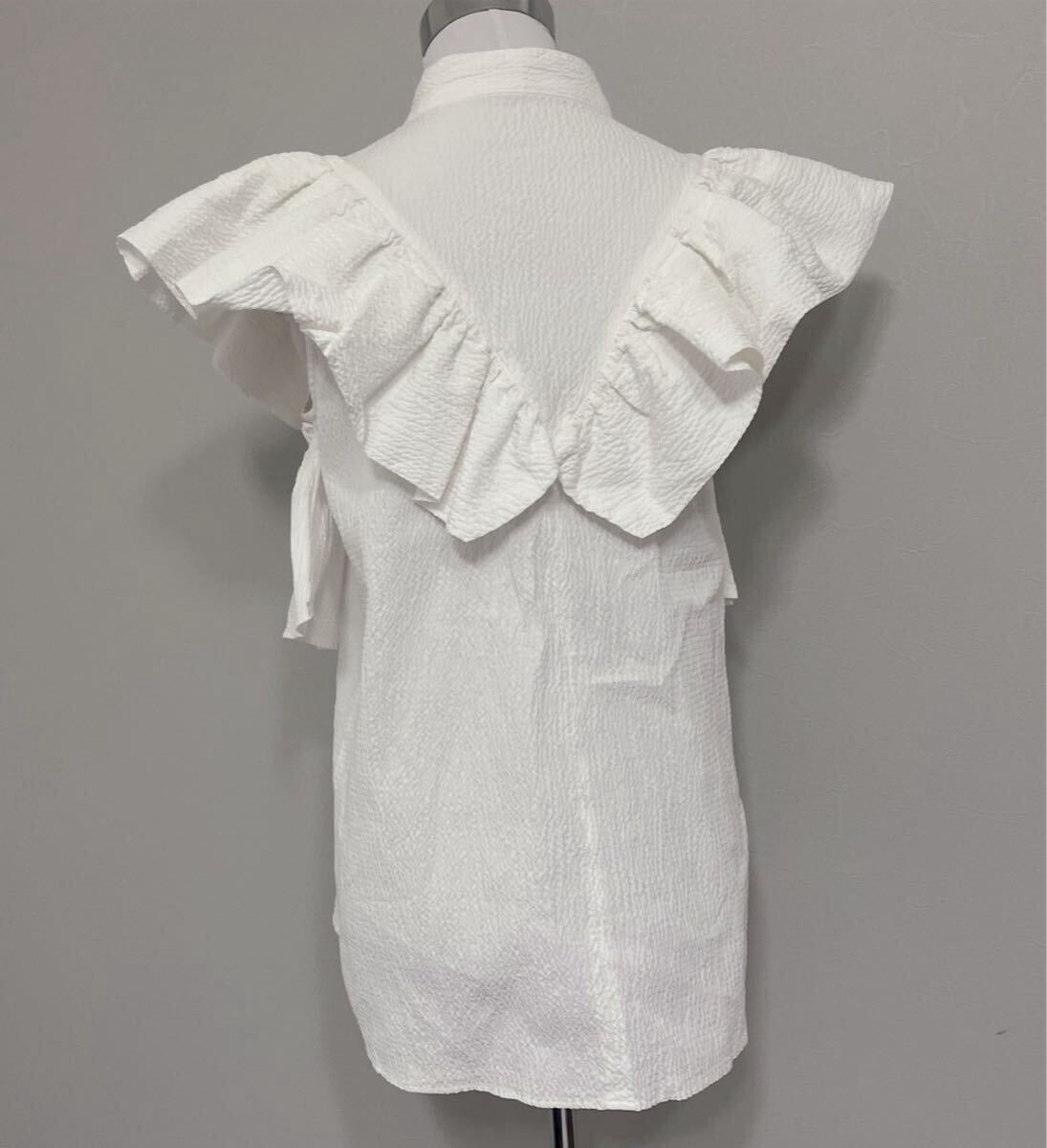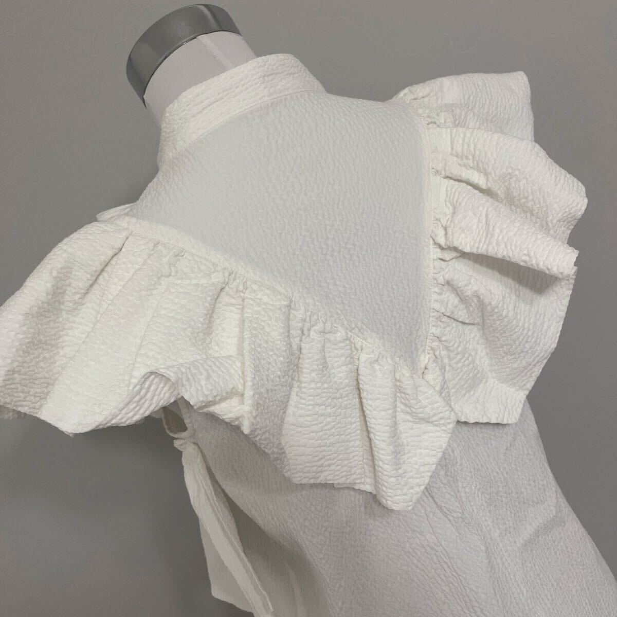 MARONENONFEE マーロンエノンフィ 白ブラウス トップス フリルシャツ ブラウス 豪華ボリューム ホワイト リボン ボウタイ FH797 收藏