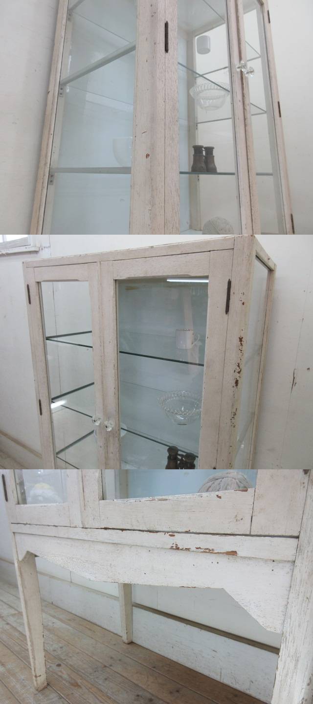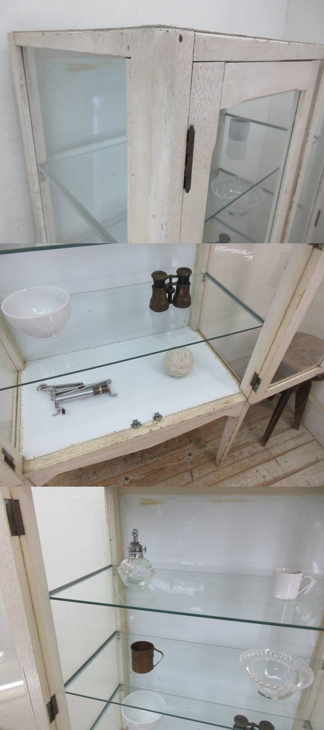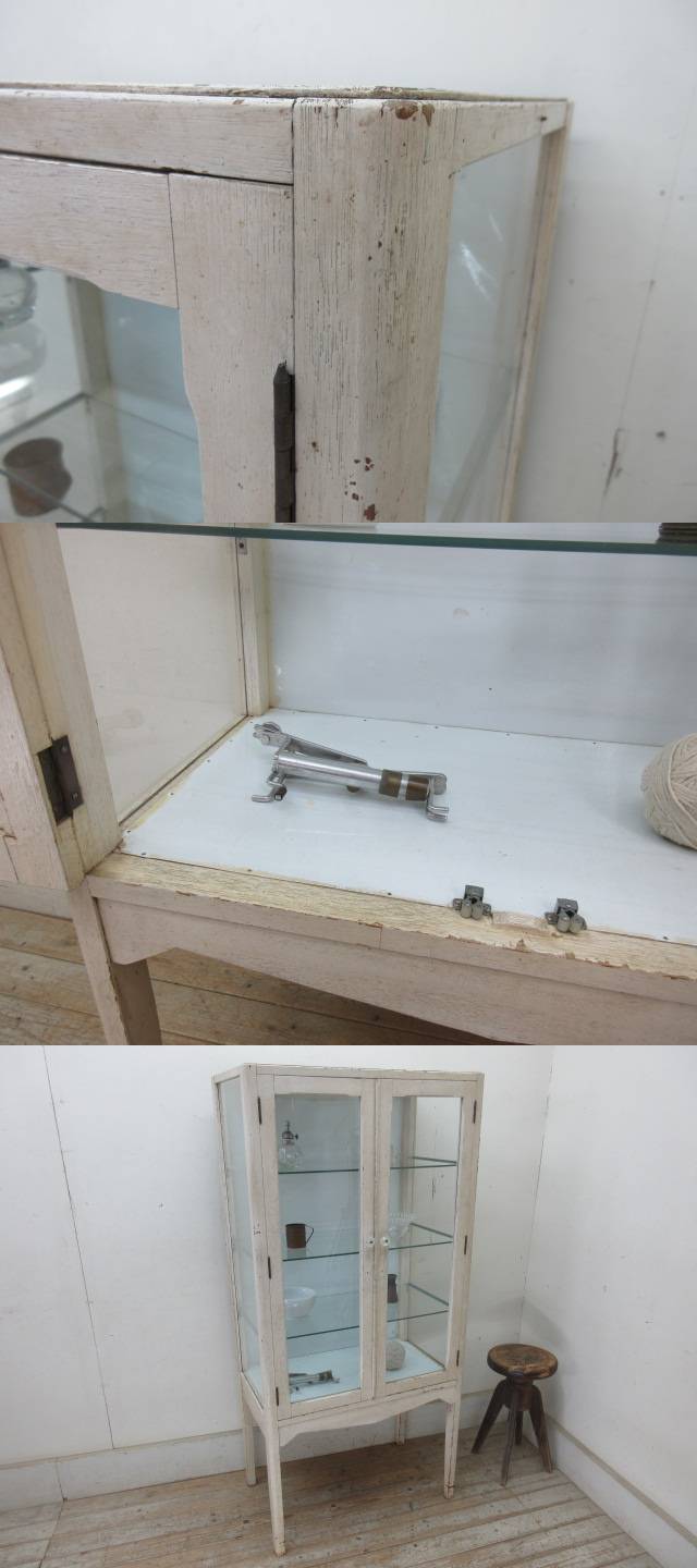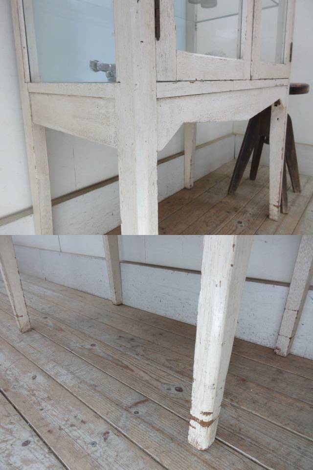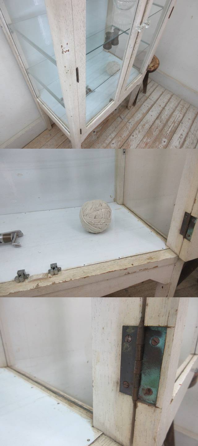 古いペンキの剥げたケビントH121 アンティーク家具医療棚収納棚陳列棚キャビネットパンケース店舗什器カフェ什器無垢材古家具 收藏