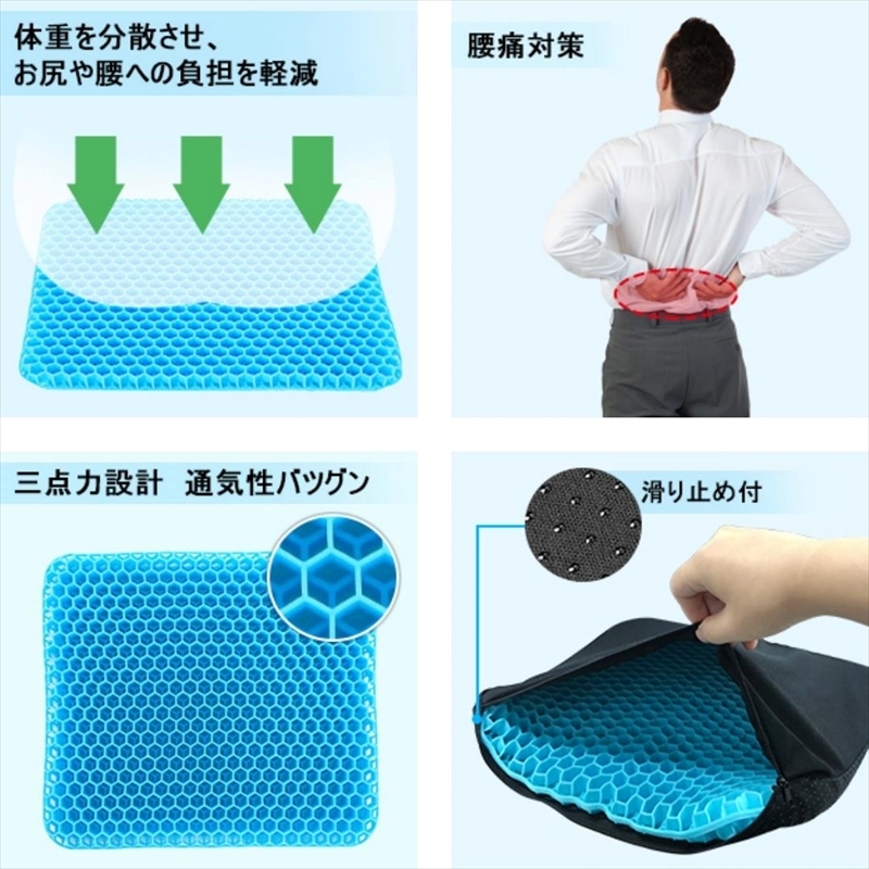 【新品即納送料無料】お尻や腰への負担を軽減 TPEゲルシートクッション◆低反発座布団/低反発クッション/腰痛対策クッション/通気性抜群 收藏